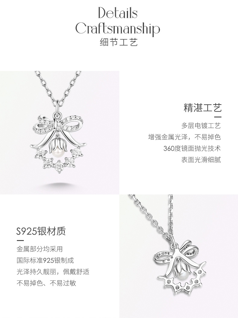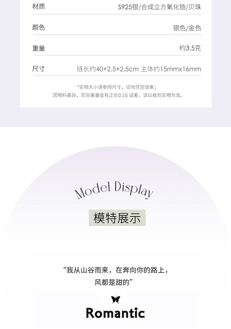 Fanci范琦 光影蝴蝶项链女款蝴蝶贝母银项链锁骨链送女友生日礼物
