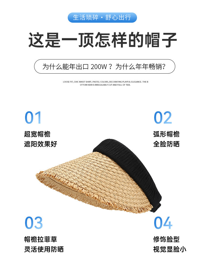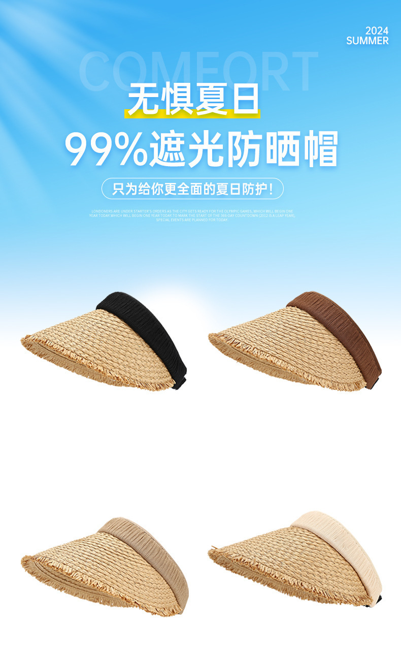 【无惧夏日❗99%遮光防晒帽】夏季草帽大帽檐空顶帽,帽檐耐弯折佩戴遮阳舒适,修饰脸型视觉显脸小,户外沙滩海边防晒帽显脸小可折叠帽子QQ