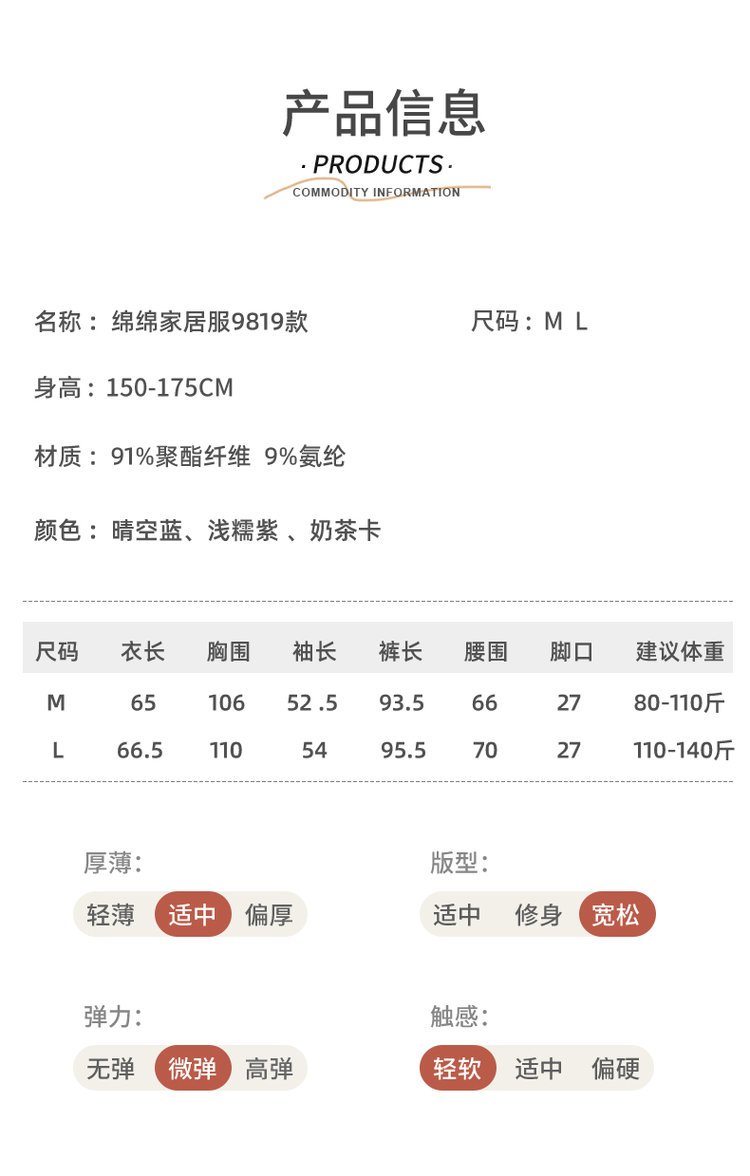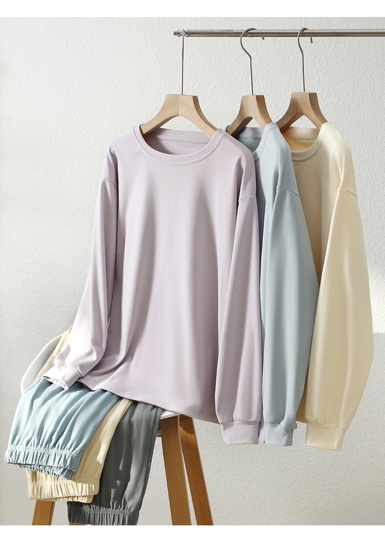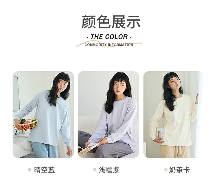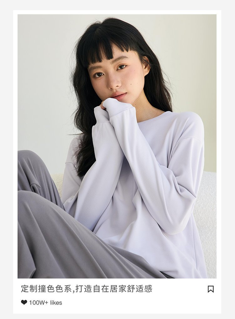 除了居家成套穿着,单品大T恤,日常打底穿也很可。束口裤脚,不拖地,穿着利落更方便,穿起来如云朵般绵软亲肤,白天陪你身心放松,夜晚助你睡得更香。