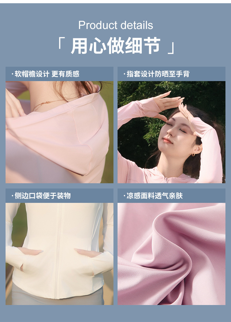 原纱锦纶防晒服女连帽夏季户外超薄透气upf50防紫外线冰感防晒服