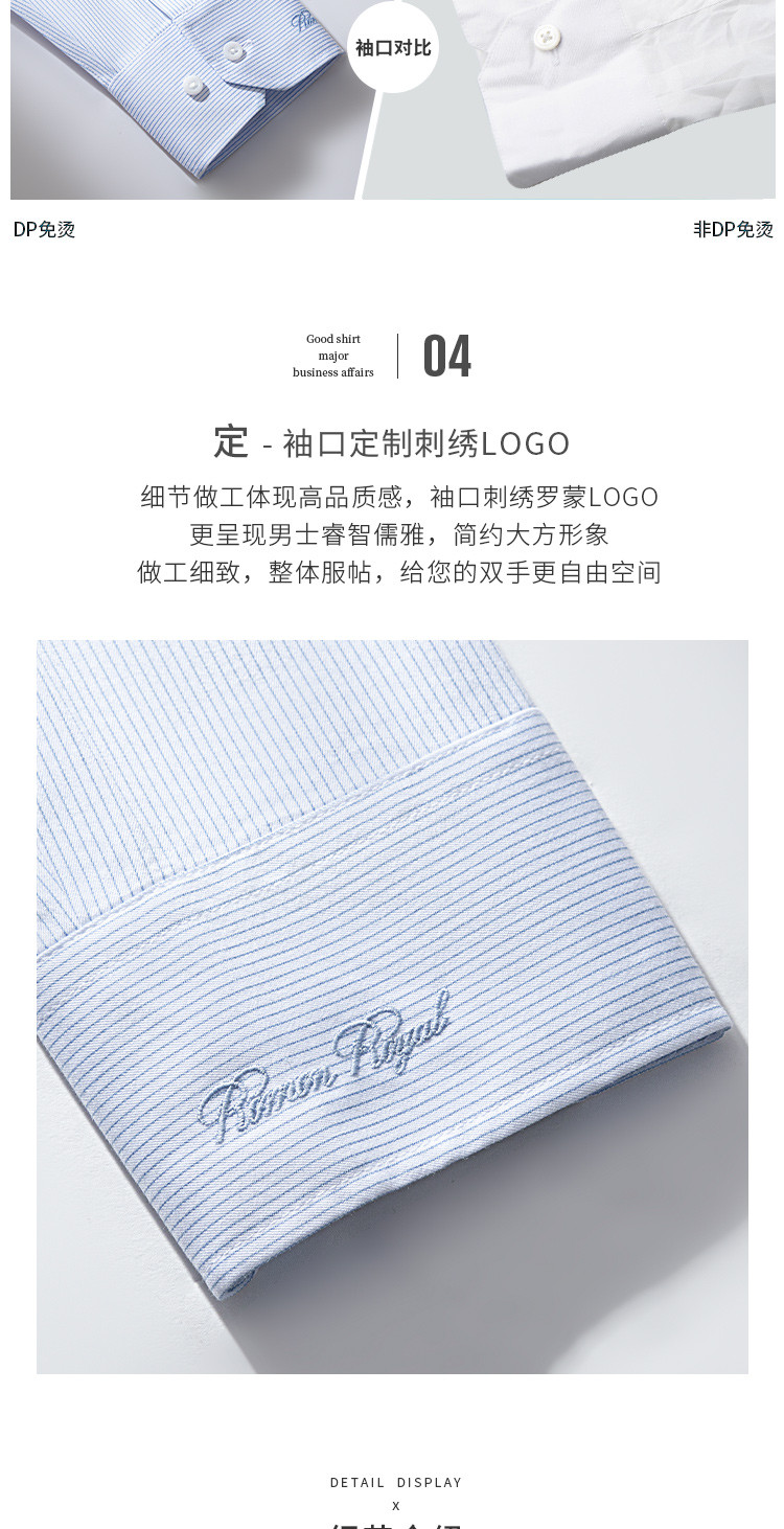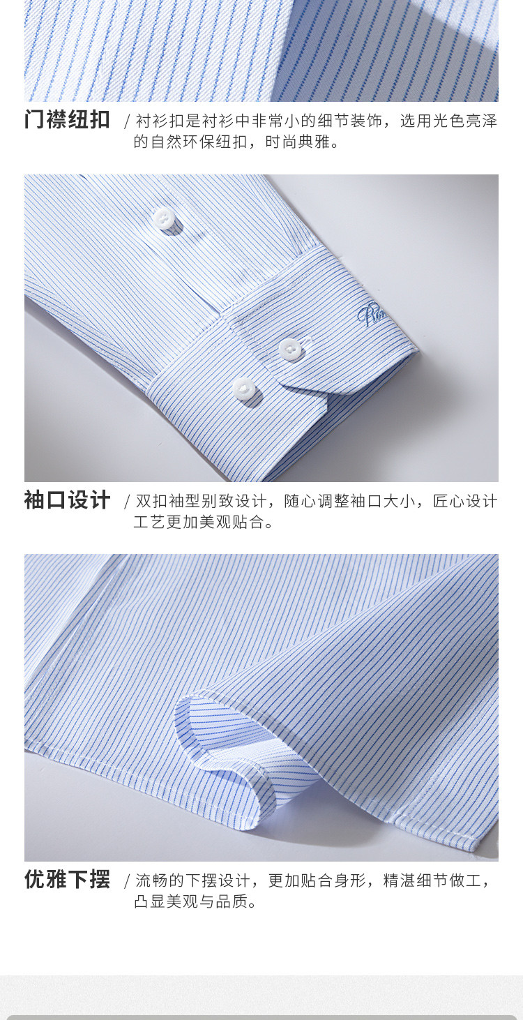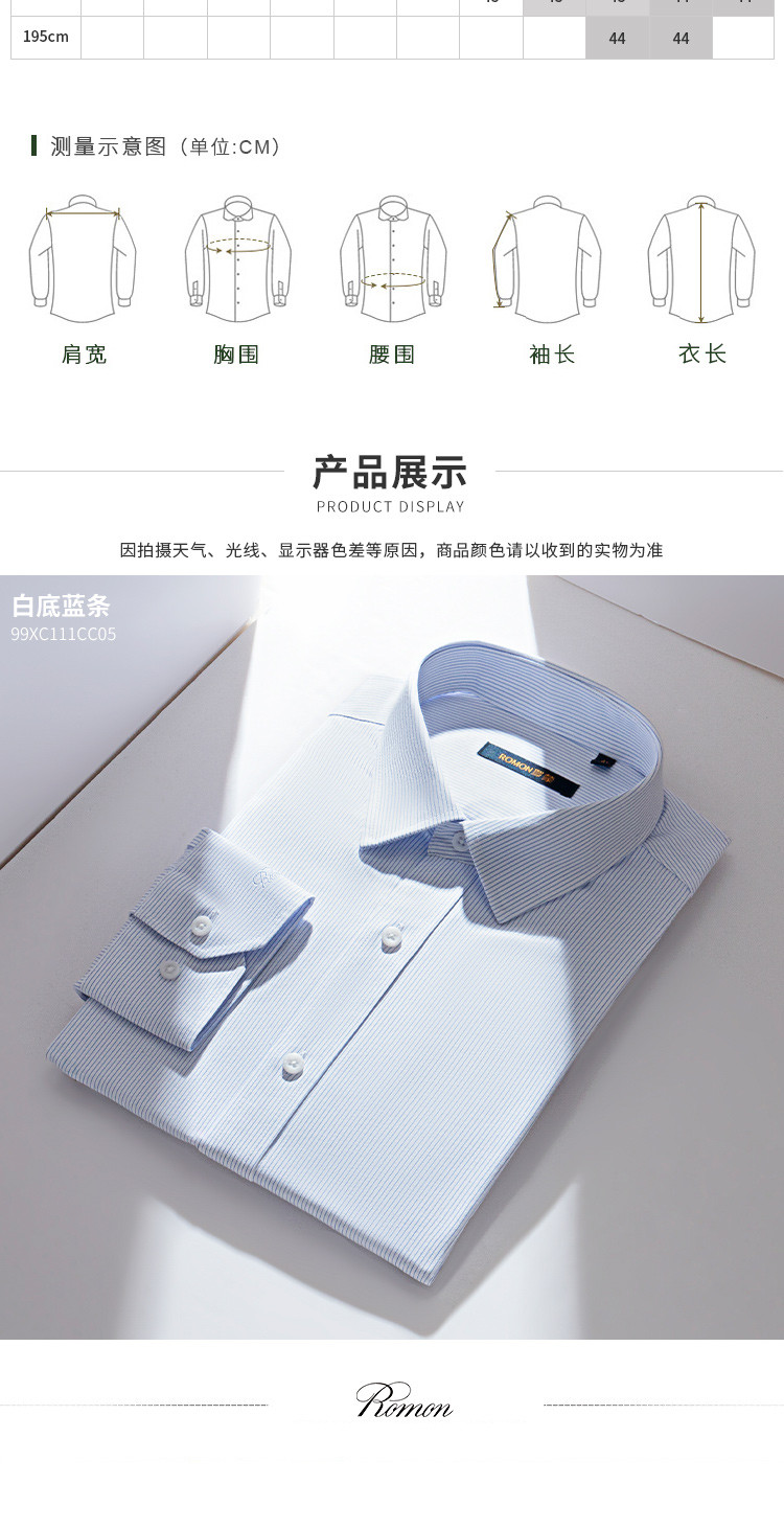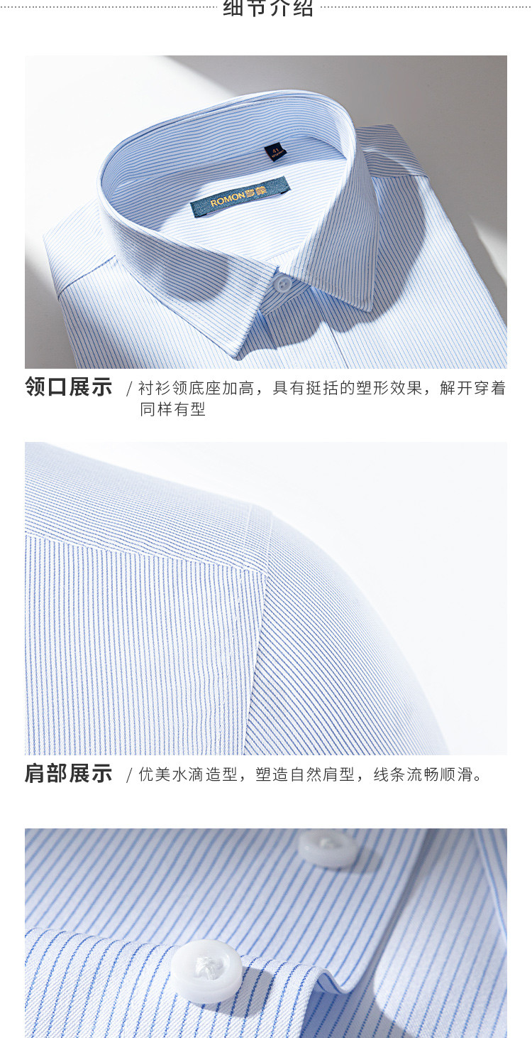 【纯棉免烫精美刺绣】罗蒙男士长袖衬衫春夏正装商务通勤免烫条纹衬衣