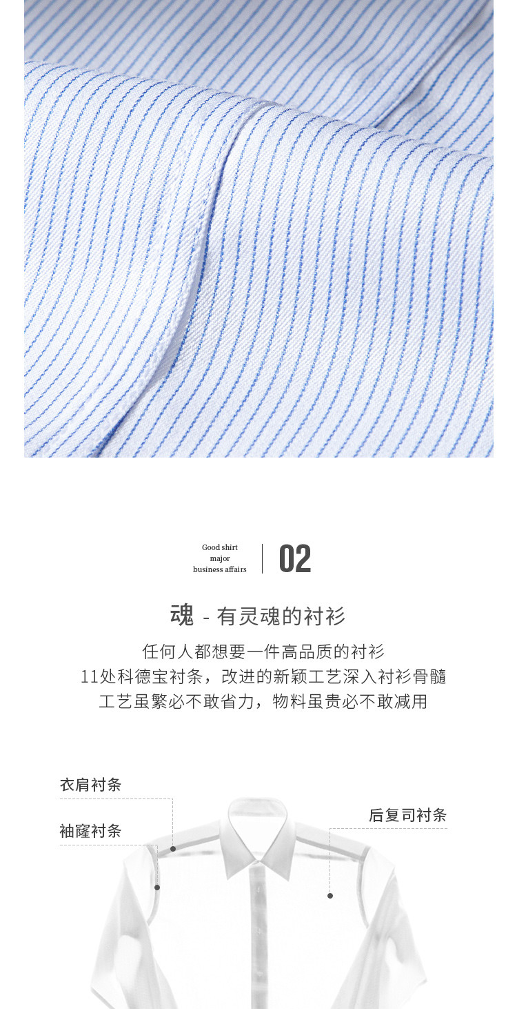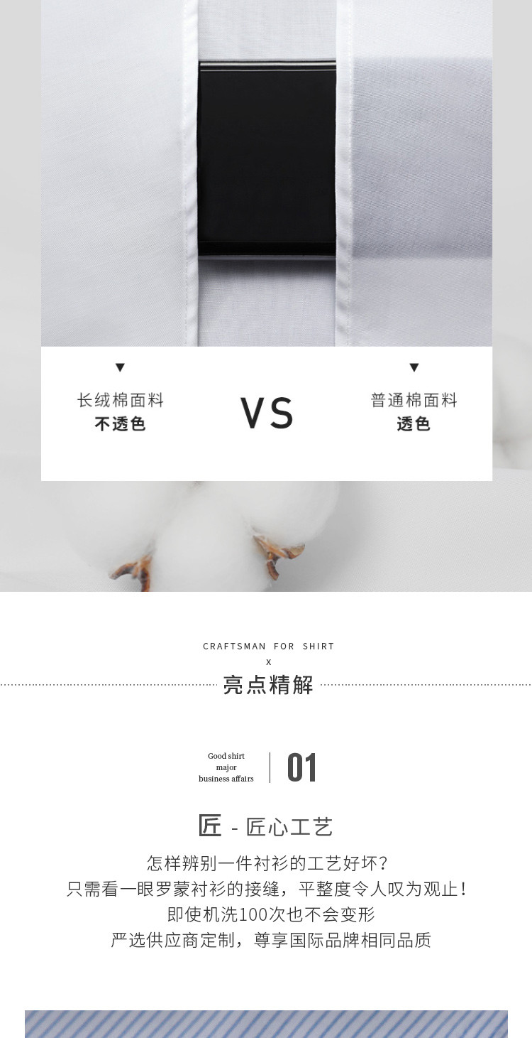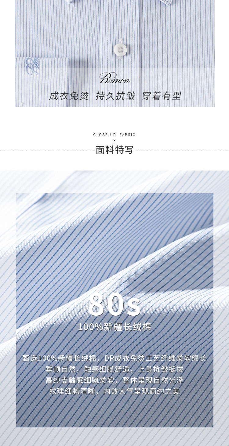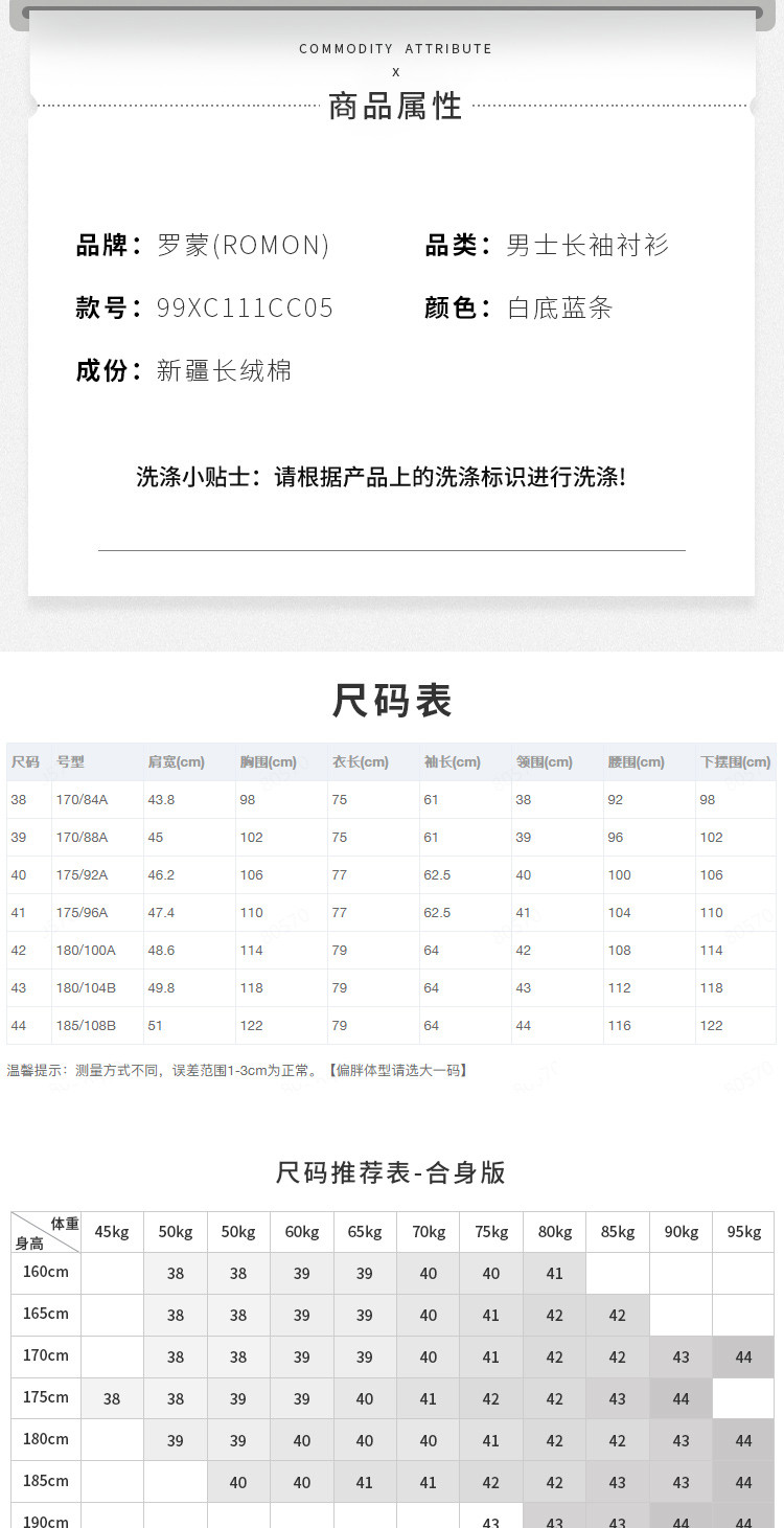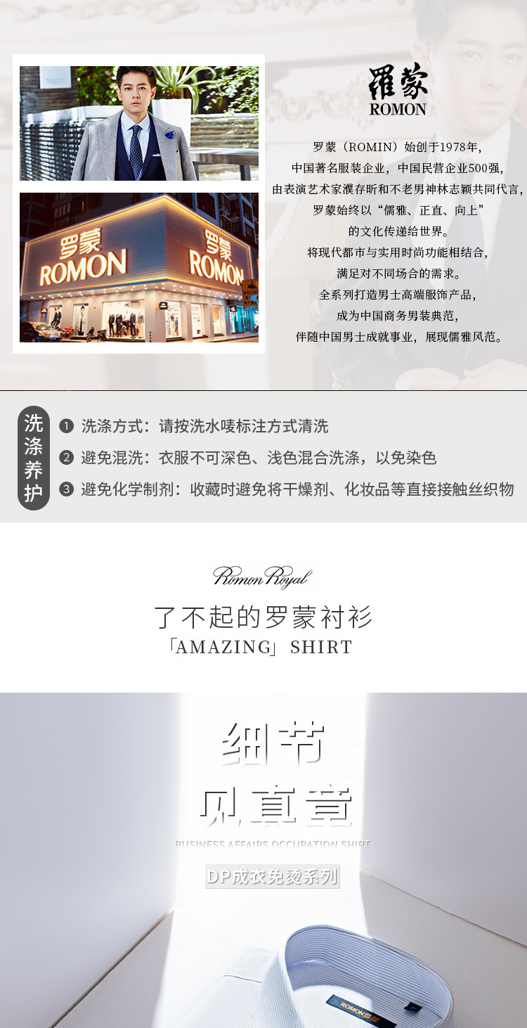 【纯棉免烫精美刺绣】罗蒙男士长袖衬衫春夏正装商务通勤免烫条纹衬衣