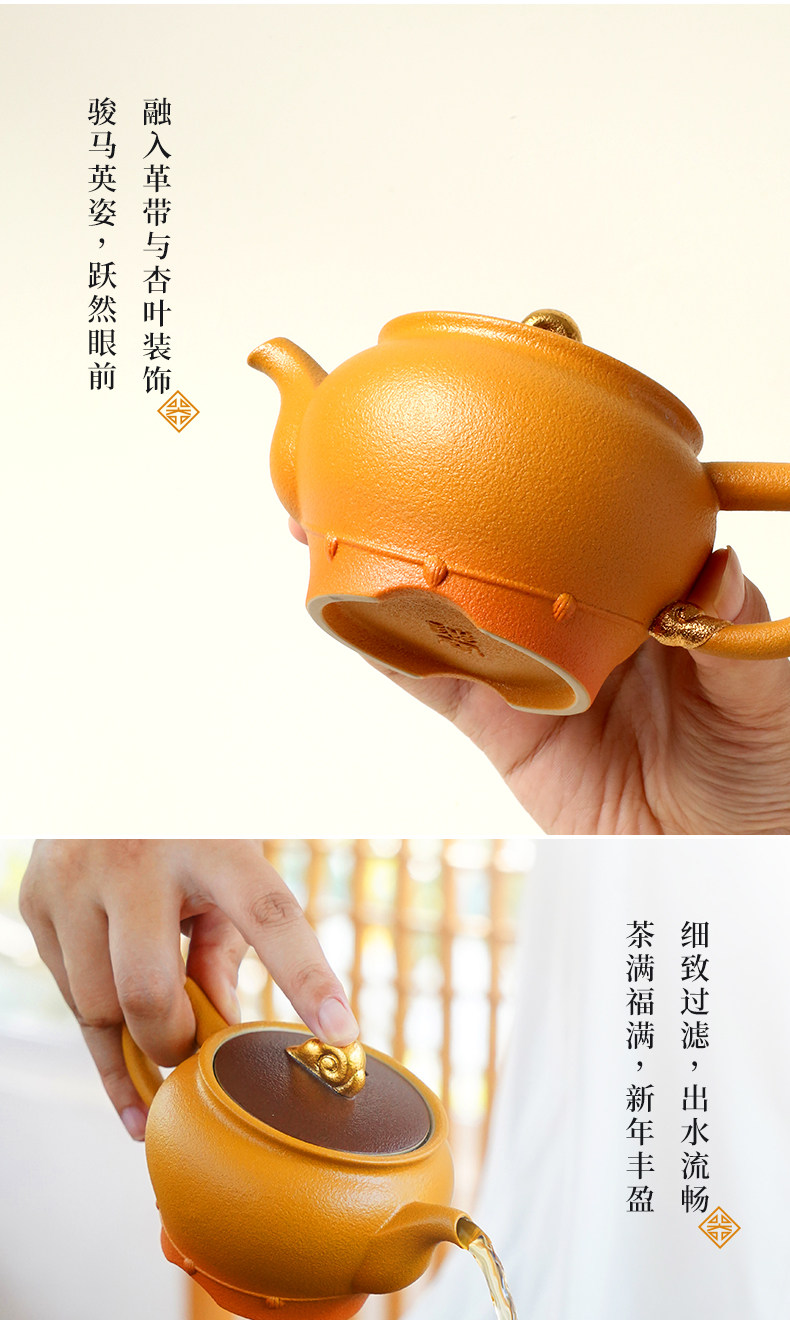 陆宝新品功夫茶具套装送礼送领导送长辈送客户礼盒飞黄腾达茶礼(丰收黄)