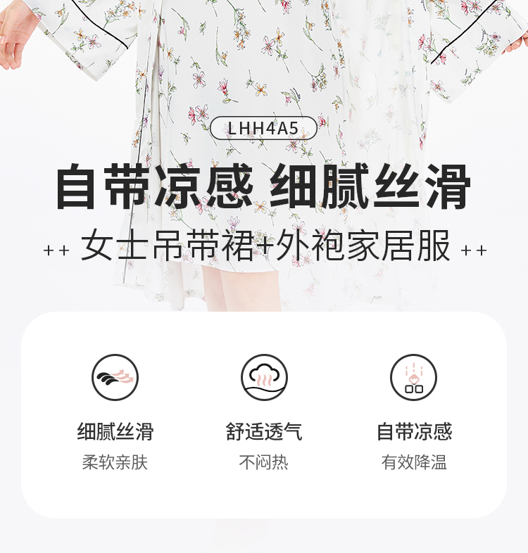 都市丽人女士丝质两件套薄冰雪丝印花好睡好眠两件套LHH4A5