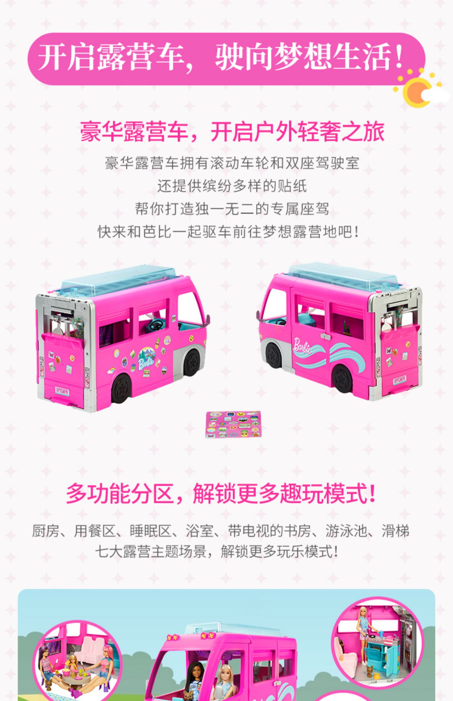 芭比娃娃HCD46芭比之梦想露营车