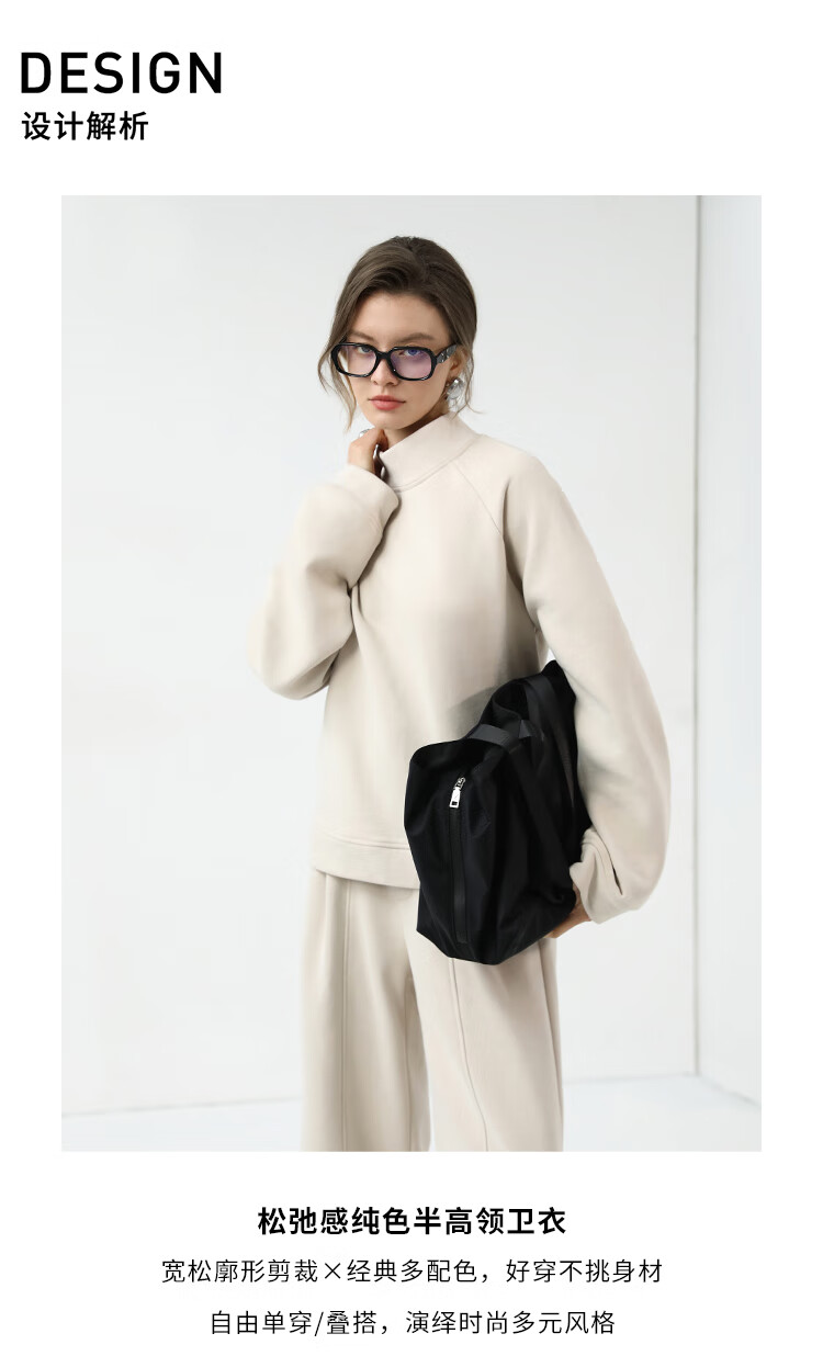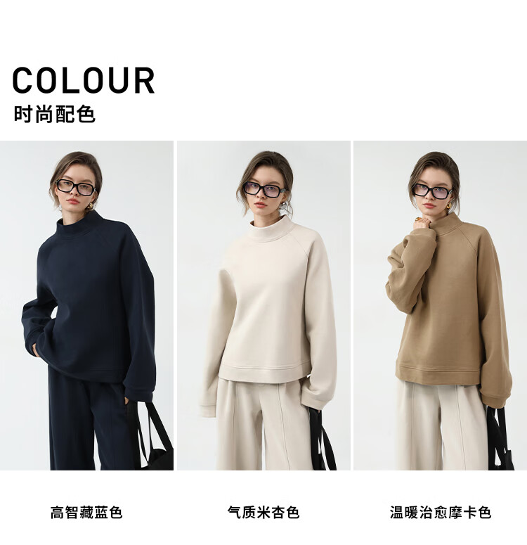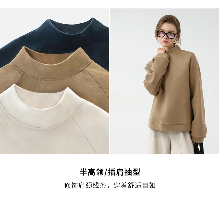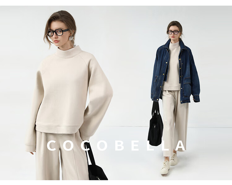 COCOBELLA简约休闲半高领卫衣25秋柔软舒适磨毛保暖外套SE3013-2