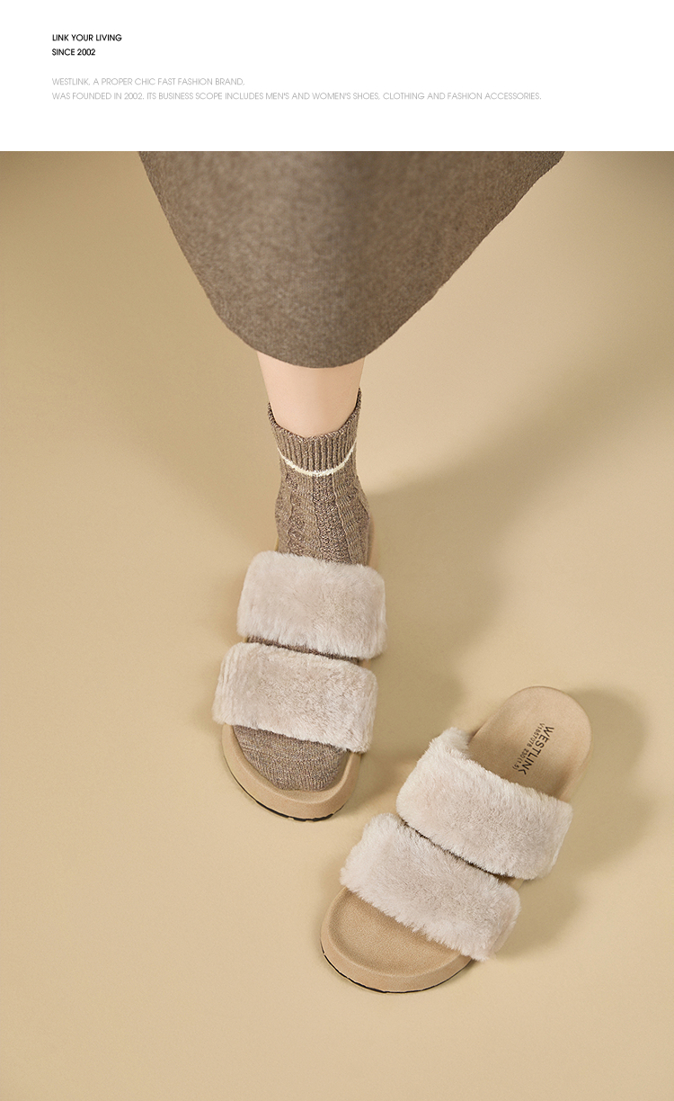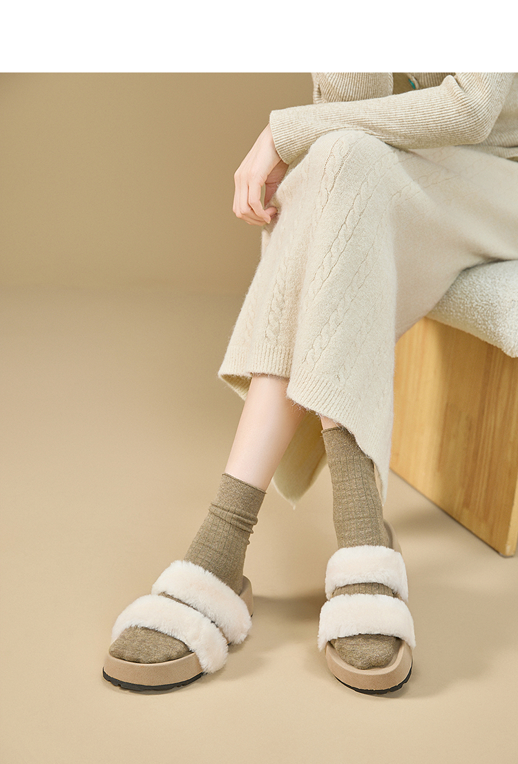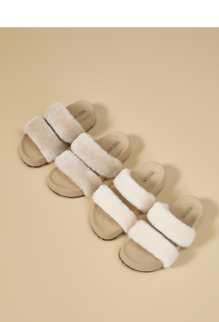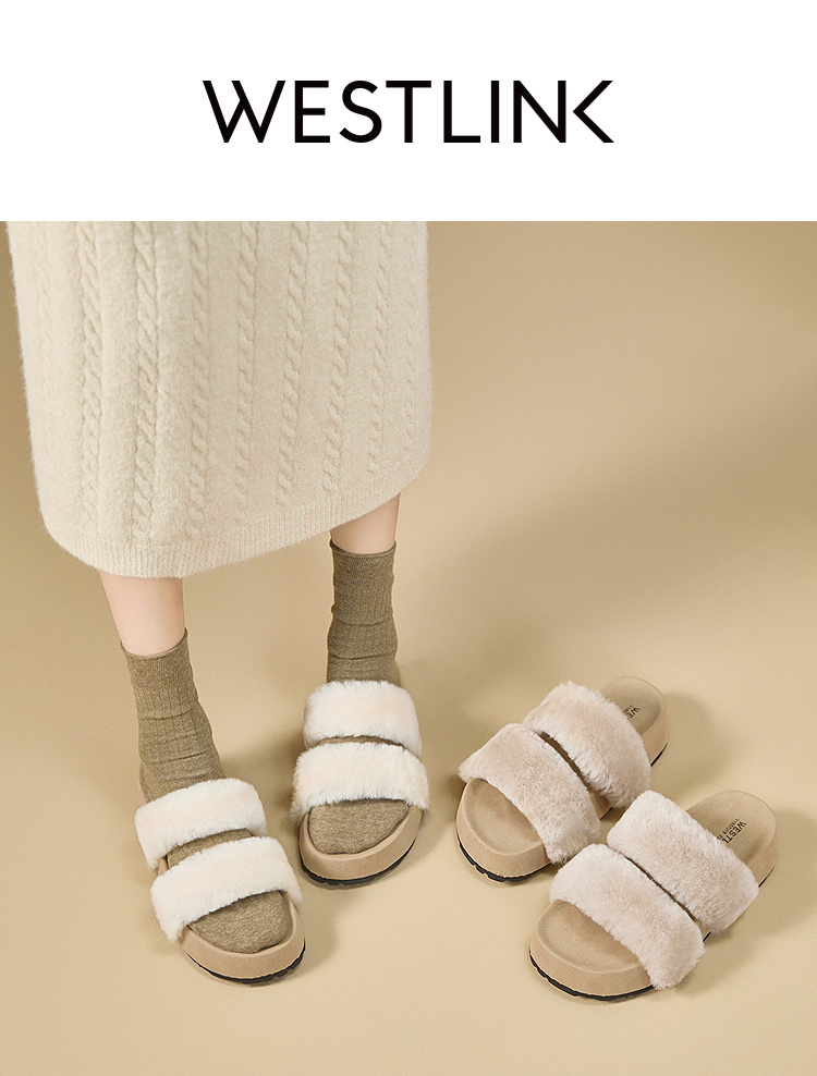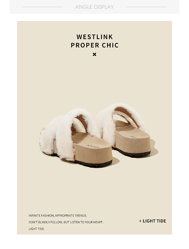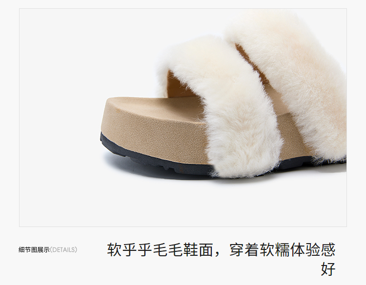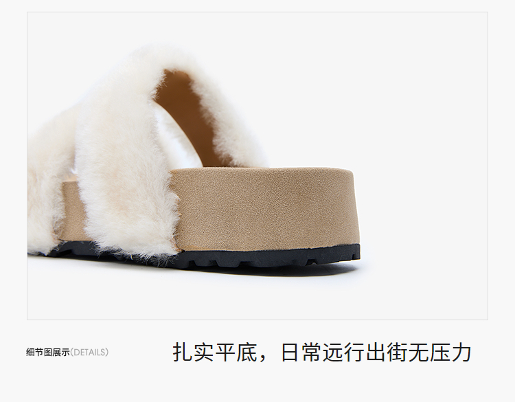 西遇法式毛毛拖鞋女新款秋冬羊毛保暖百搭配裙子厚底外穿拖鞋V1857078