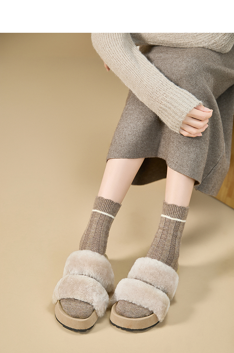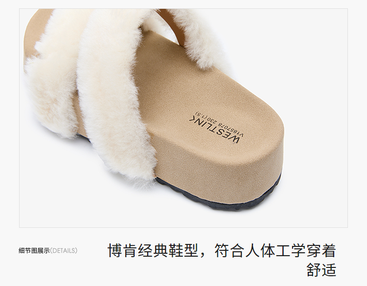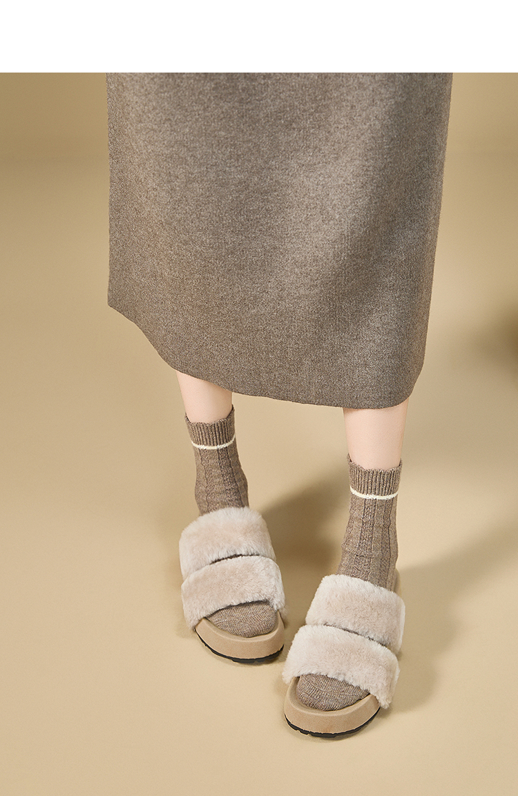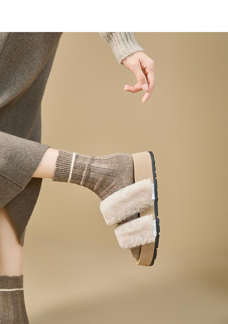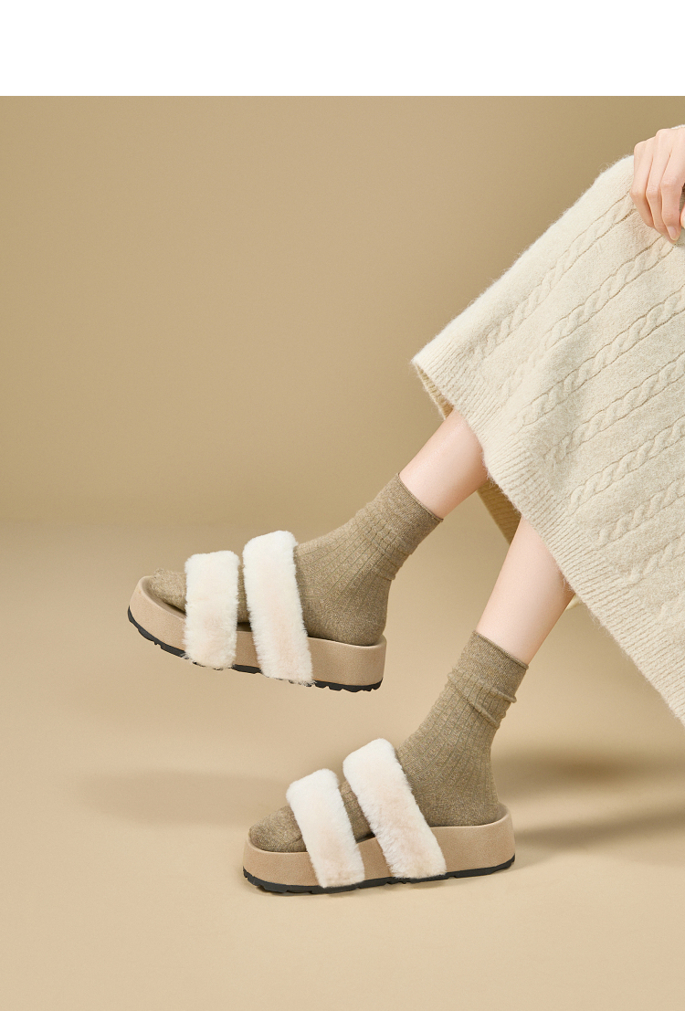 西遇法式毛毛拖鞋女新款秋冬羊毛保暖百搭配裙子厚底外穿拖鞋V1857078
