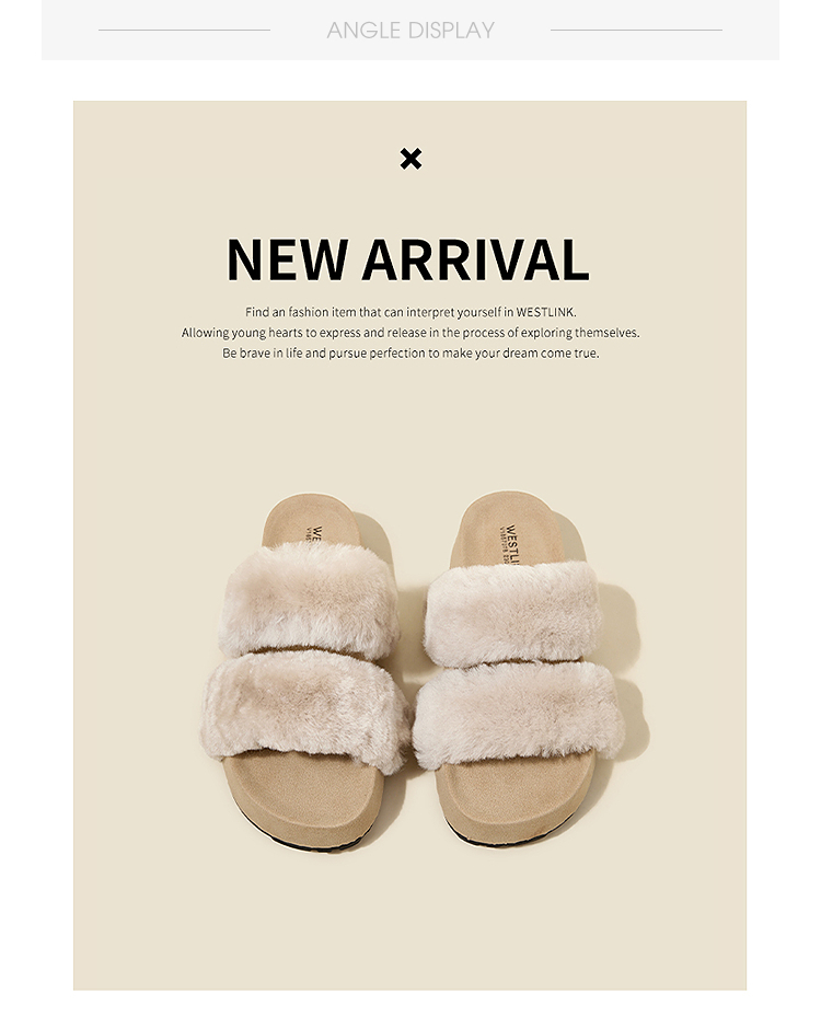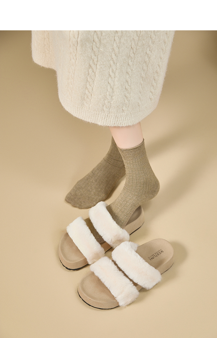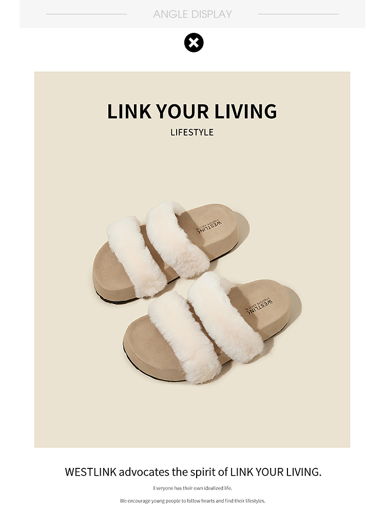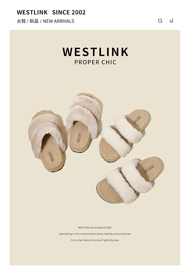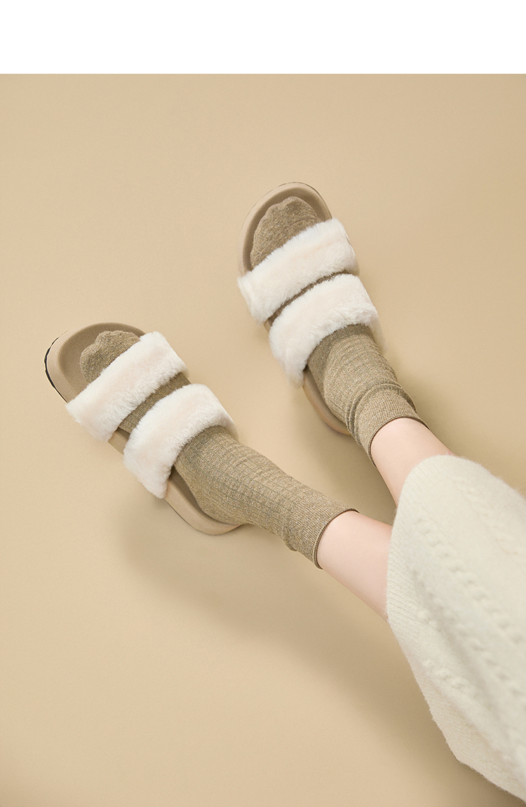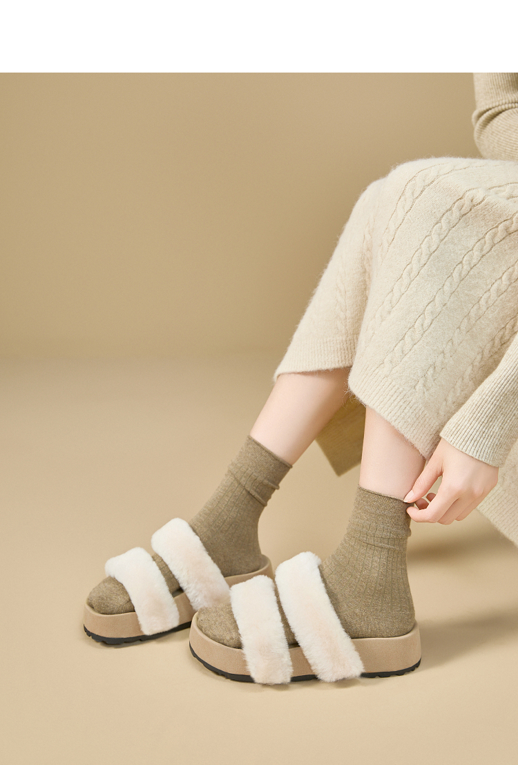 西遇法式毛毛拖鞋女新款秋冬羊毛保暖百搭配裙子厚底外穿拖鞋V1857078