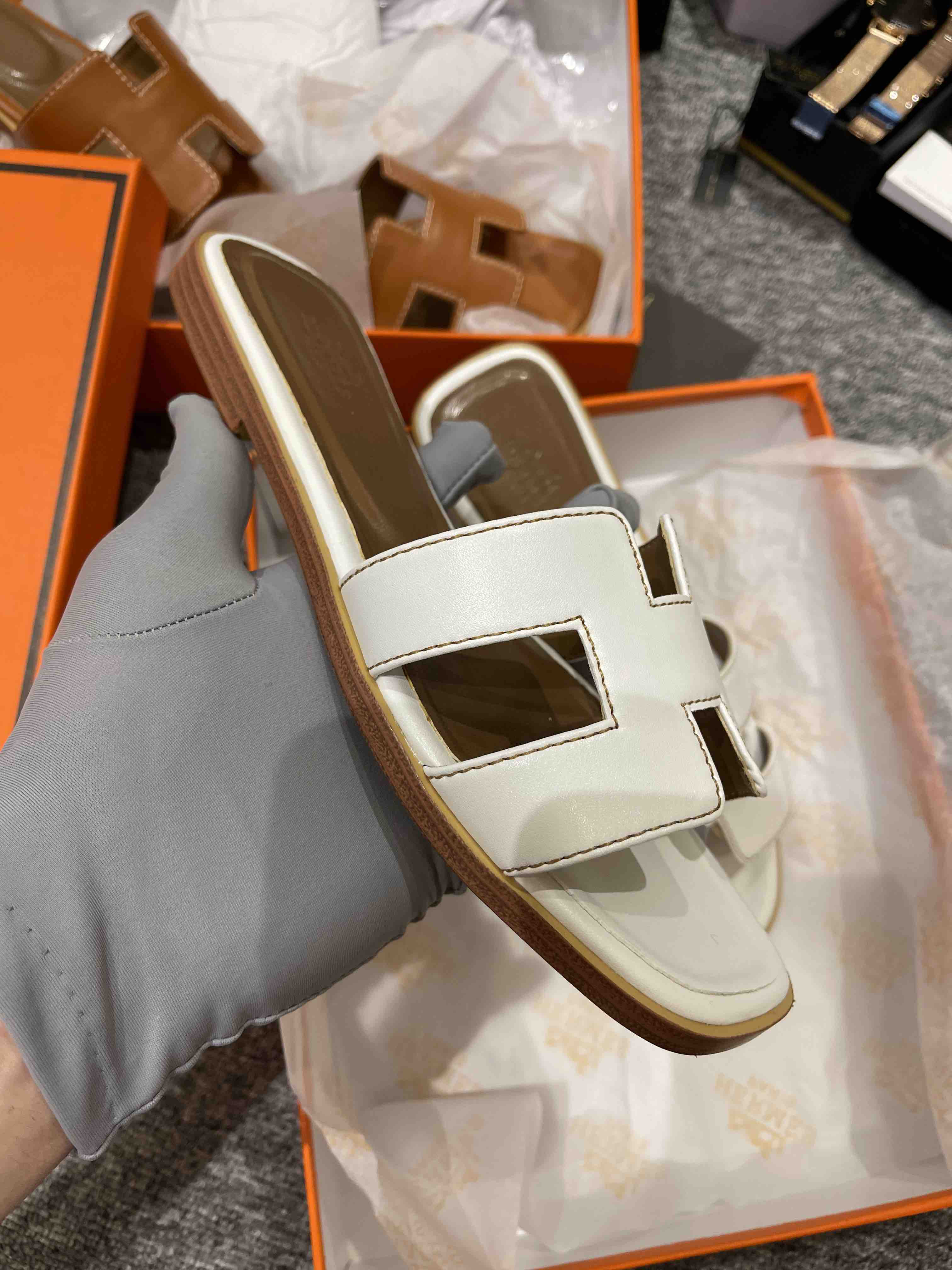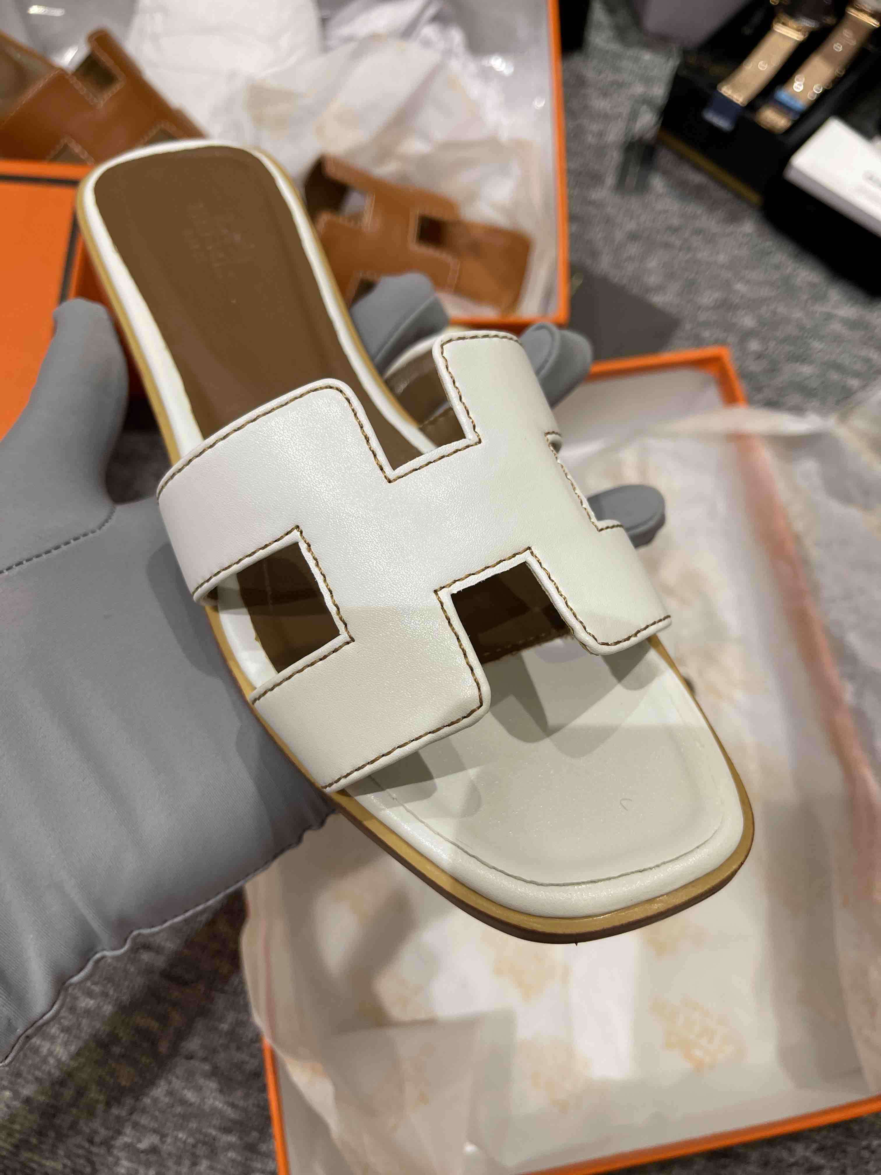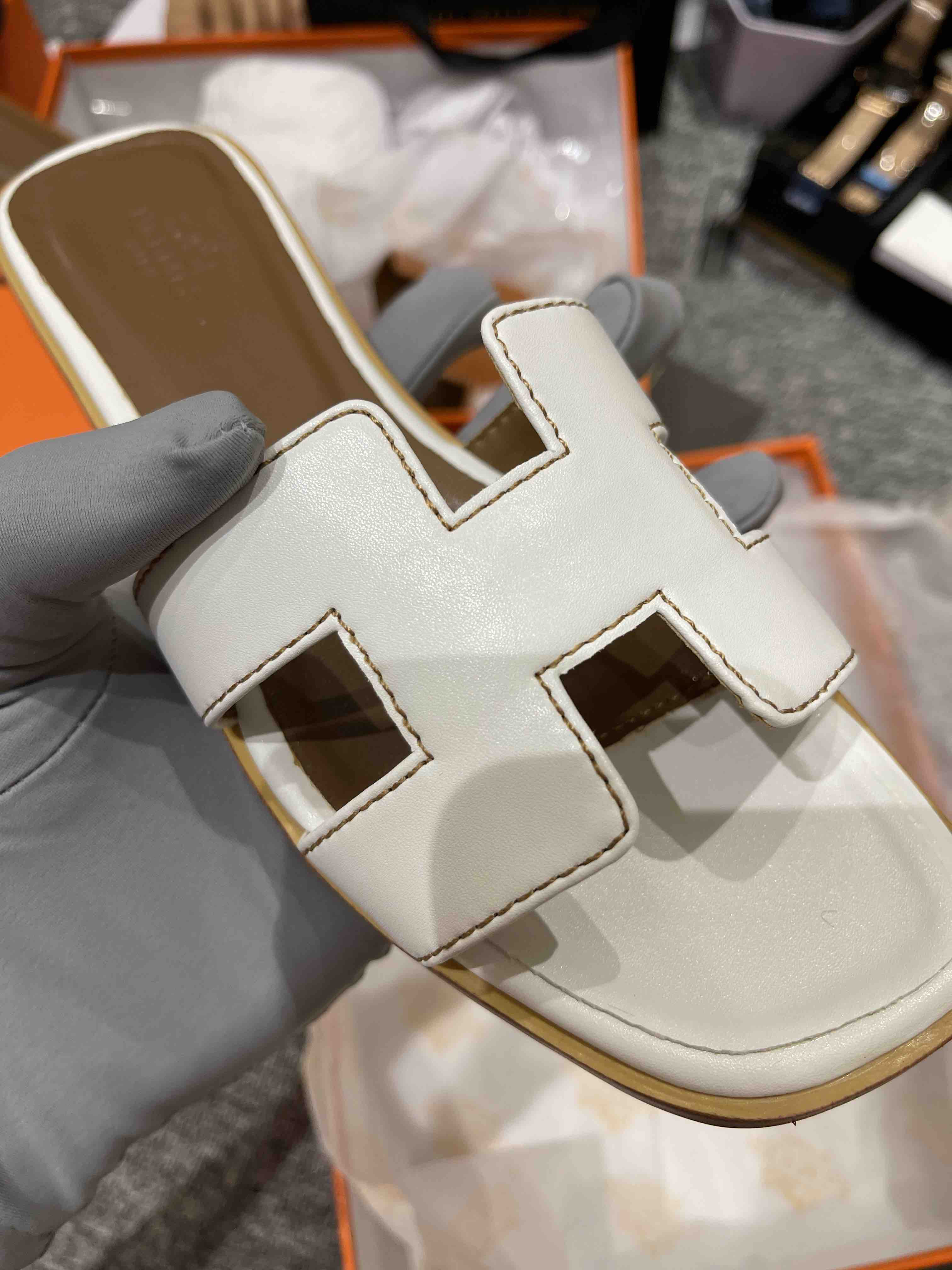 爱马经典H拖鞋(白色平底),全新全套包装,特价清仓🉐️,顺丰包邮到家!!!标准码,错过会哭