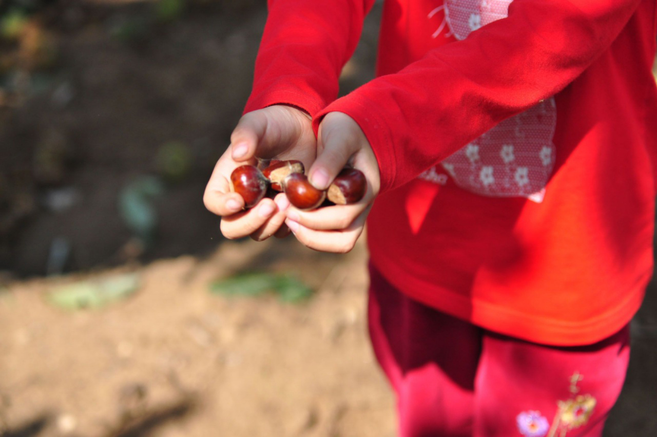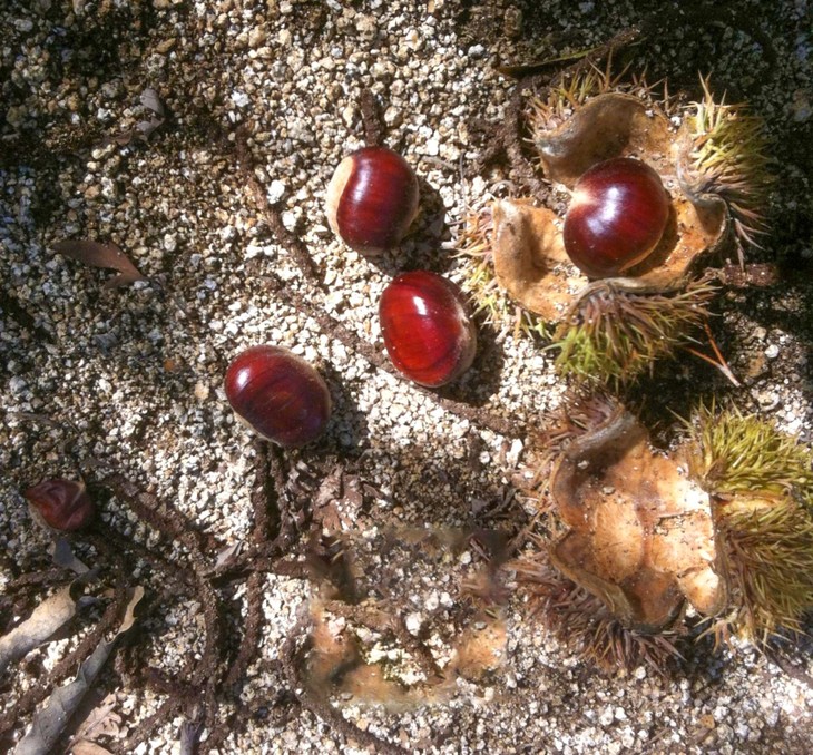 每天去捡拾成熟落地的栗果
