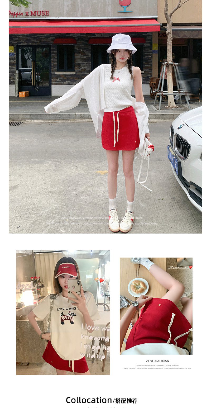 <曾小咸推荐>韩系休闲红色半身裙短裙