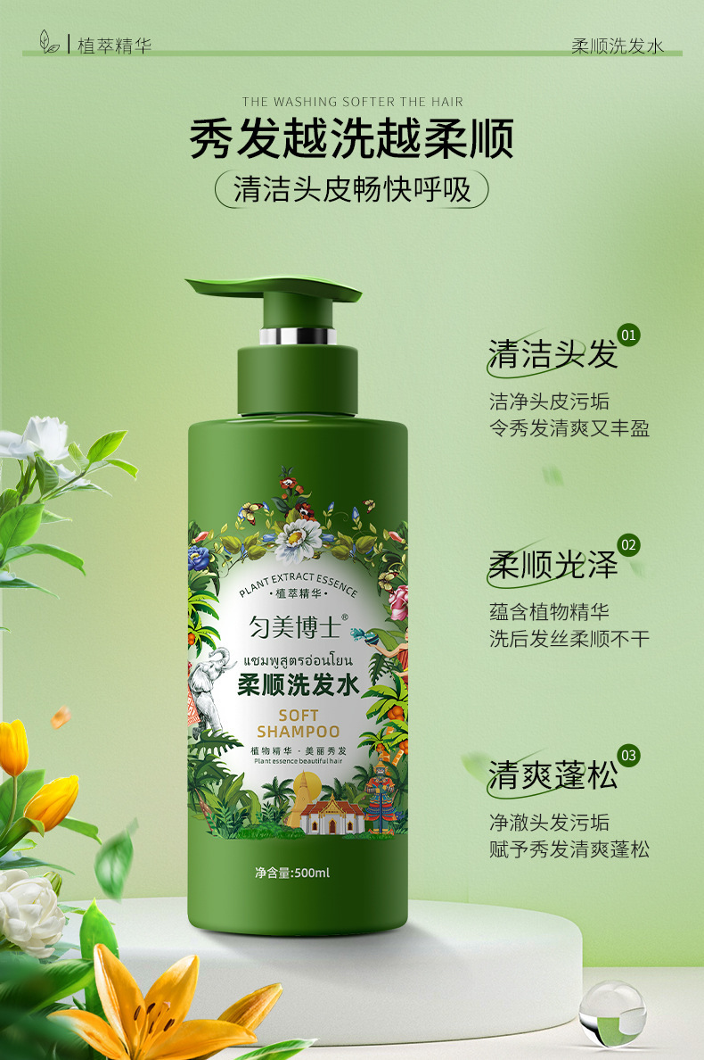 「买1送1!到手两瓶」匀美博士柔顺洗发水 丝滑控油柔顺去屑蓬松改善扁塌洗发露护发