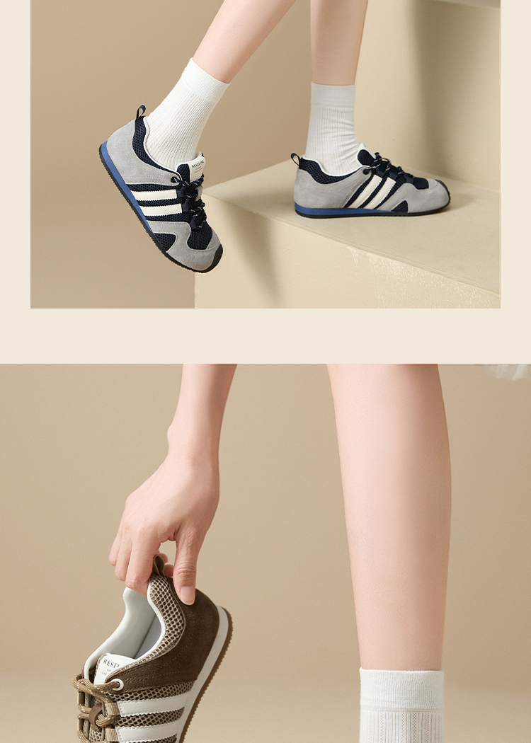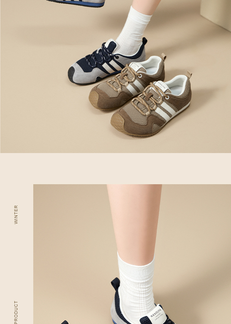 西遇德训鞋女新款秋季超火复古平底歪头运动鞋轻便软底休闲鞋V1656983
