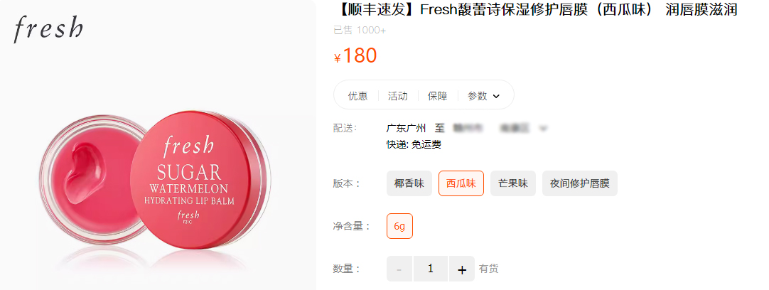 【品名】Fresh馥蕾诗保湿修护唇膜6g西瓜唇膜/芒果唇膜