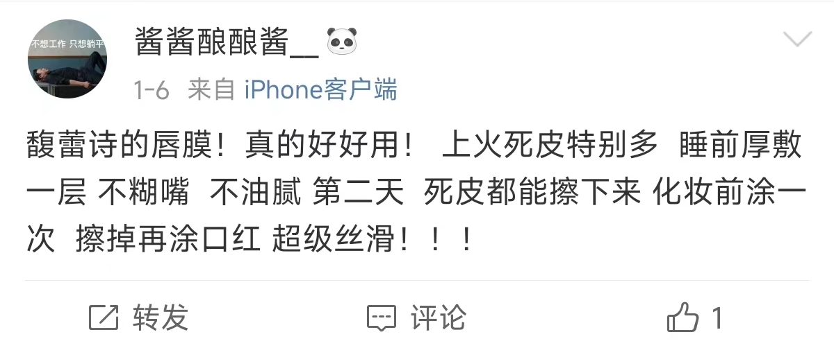 睡前涂一层,隔天起来嘴巴敲嫩~