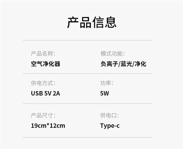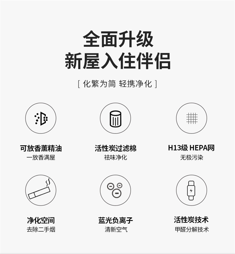 【除醛强升级】空气净化器 家用除甲醛去异味净化器 桌面室内除尘USB空气净化器