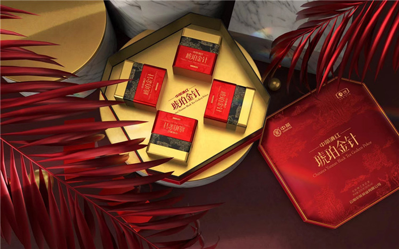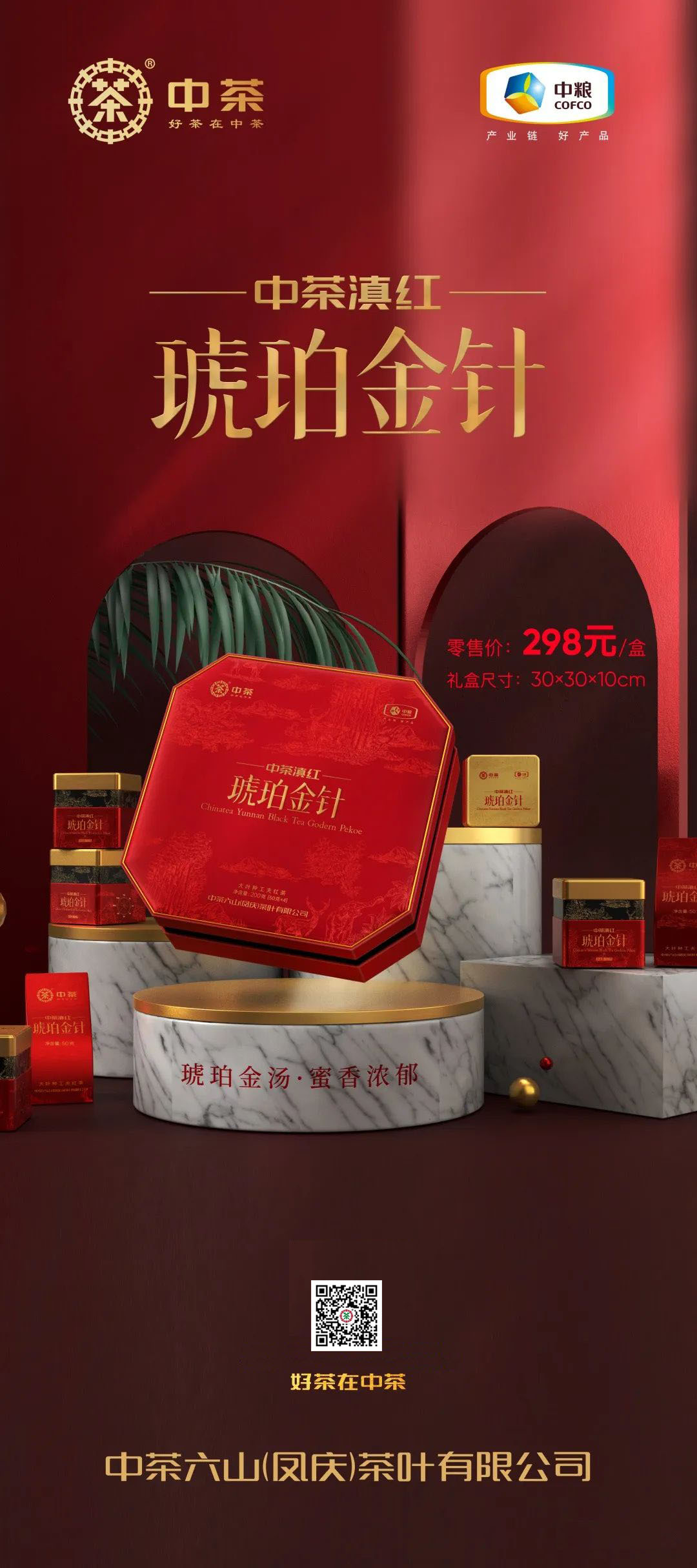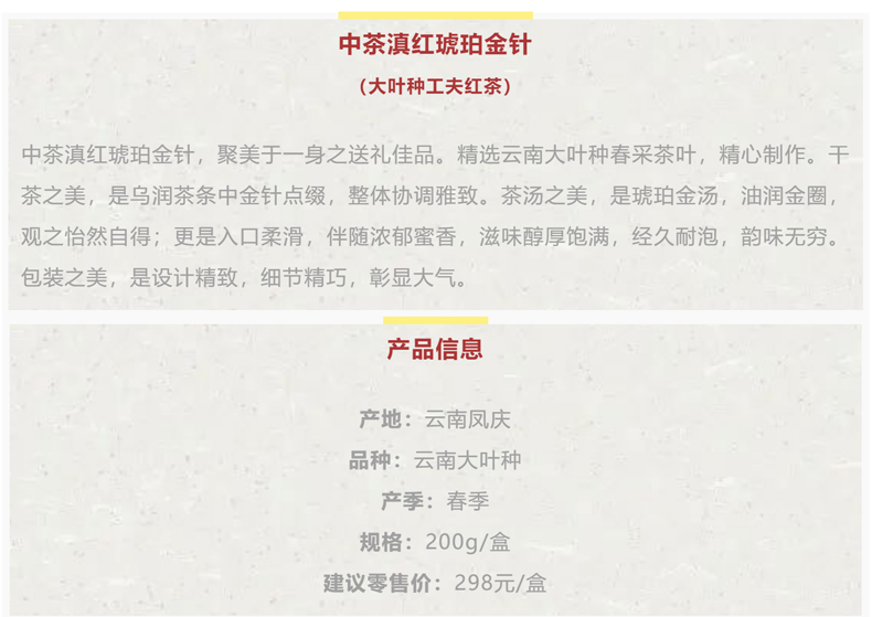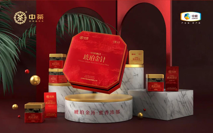 中粮-中茶茶礼牌云南滇红红茶琥珀金针大叶种工夫红茶礼盒装200g /盒