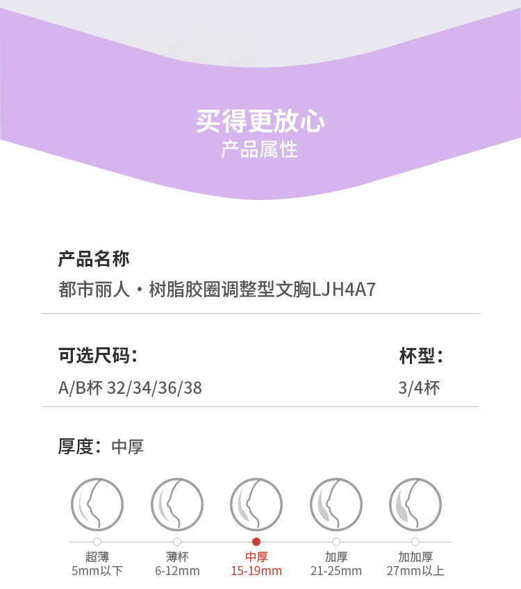 都市丽人自然舒适内衣A:中厚B:薄3/4杯蕾丝文胸三排树脂胶圈LB31A6