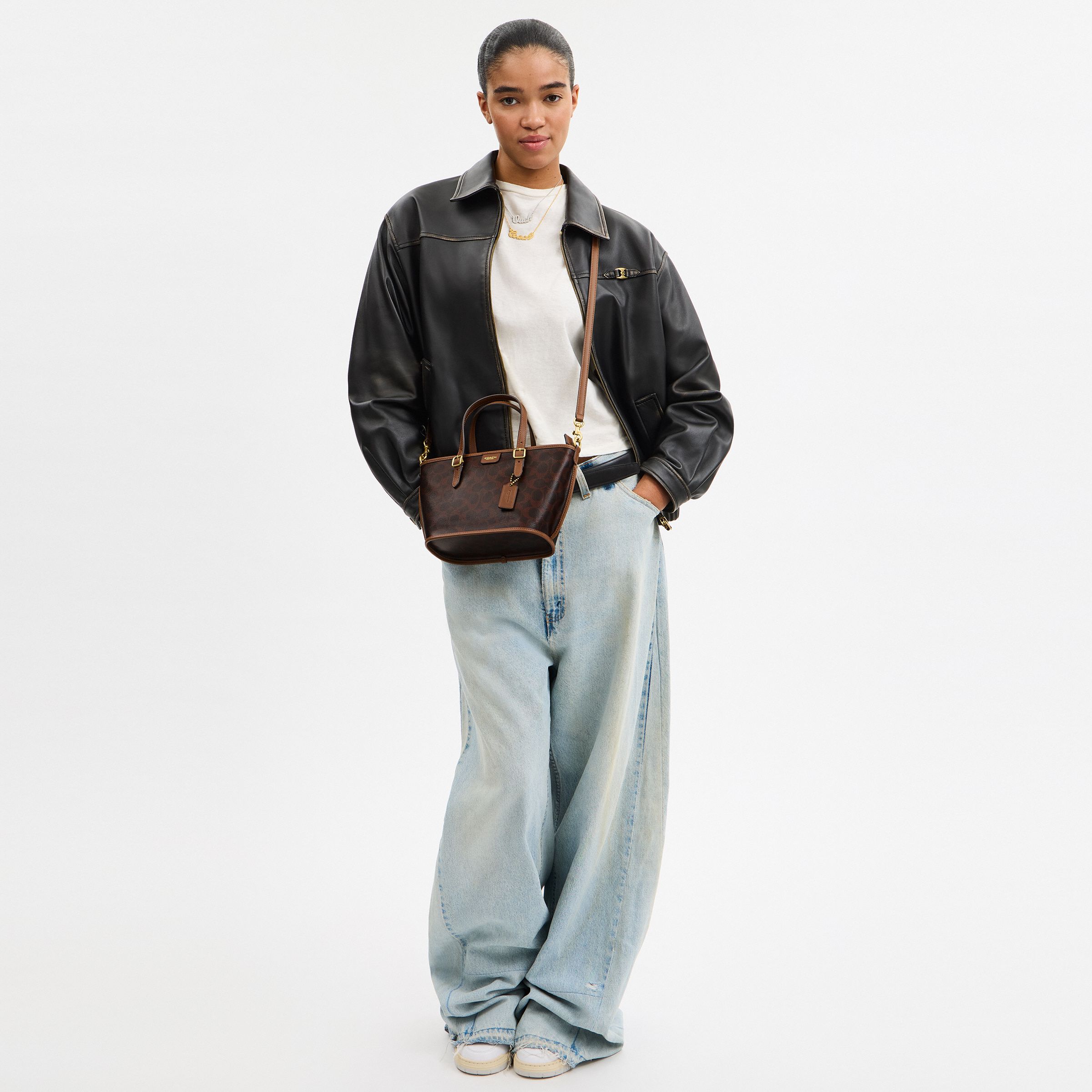 这款Taxi托特包专为出行而生,设计灵感源自纽约的悦动活力。该紧凑型手袋采用轻便的编织经典标志和植鞣皮革制作,当属工作通勤、周末出行与忙碌生活的出色之选。顶部拉链设计提供可收纳日常随身物品的充足空间,还配有能确保手袋挺括有型的接缝滚边以及一条可斜挎的可拆卸肩带。