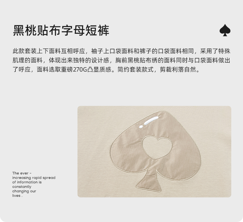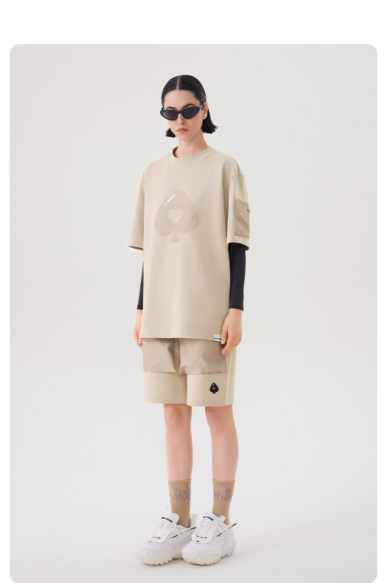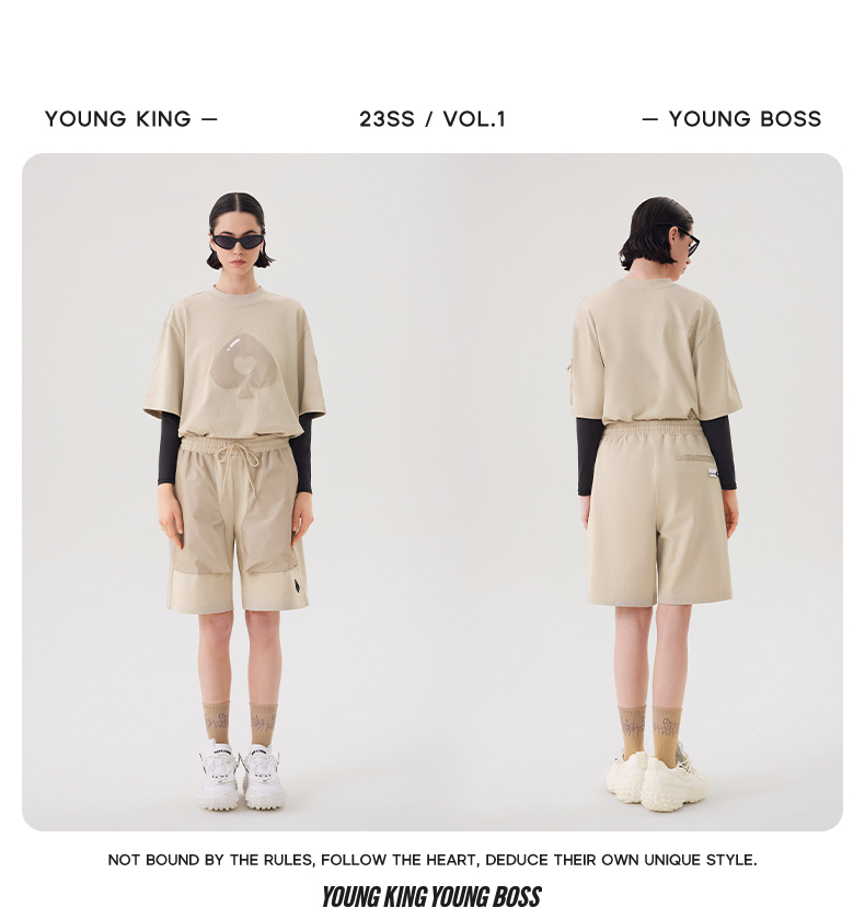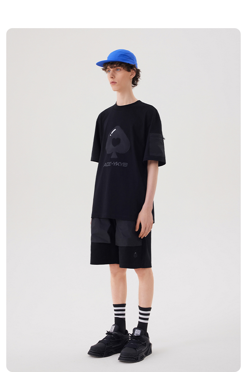 YKYB 23SS黑桃贴布字母短裤城市户外风宽松速干五分裤工装休闲裤