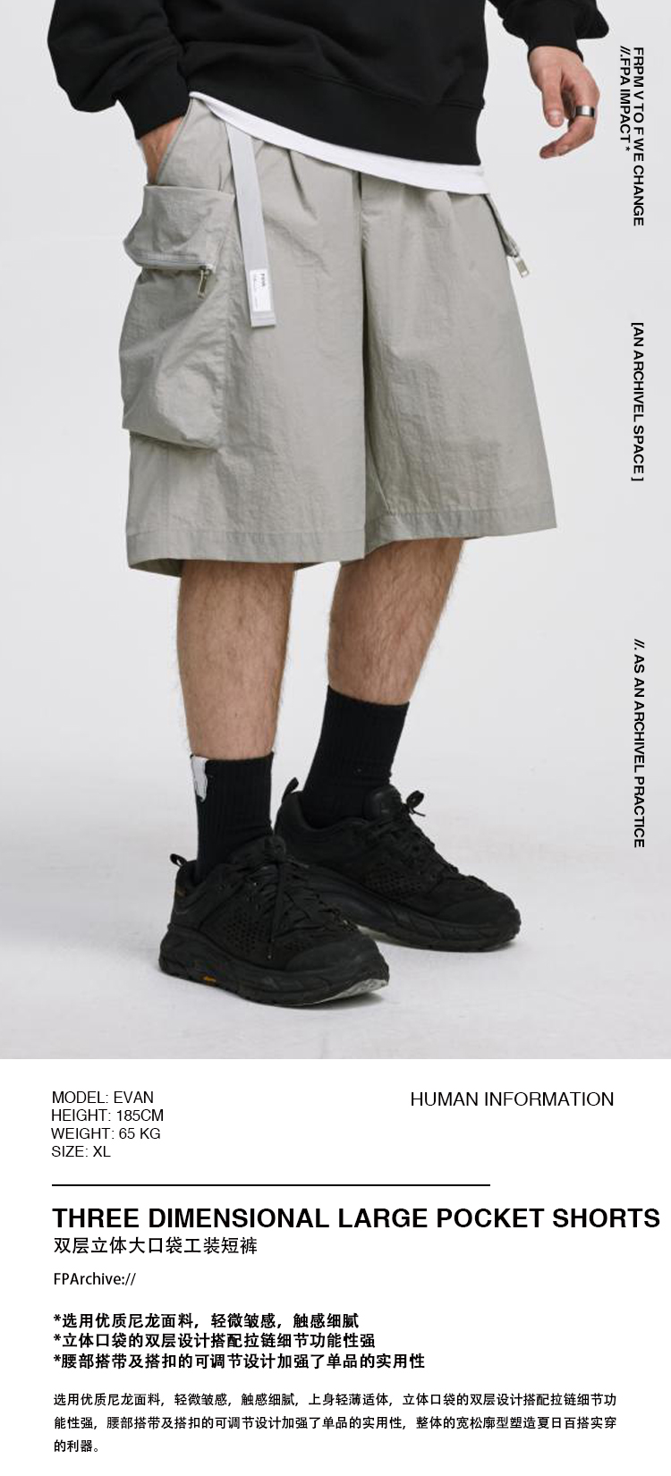 FPA(VENGETICE)双层立体口袋短裤 国潮牌工装宽松休闲五分机能裤