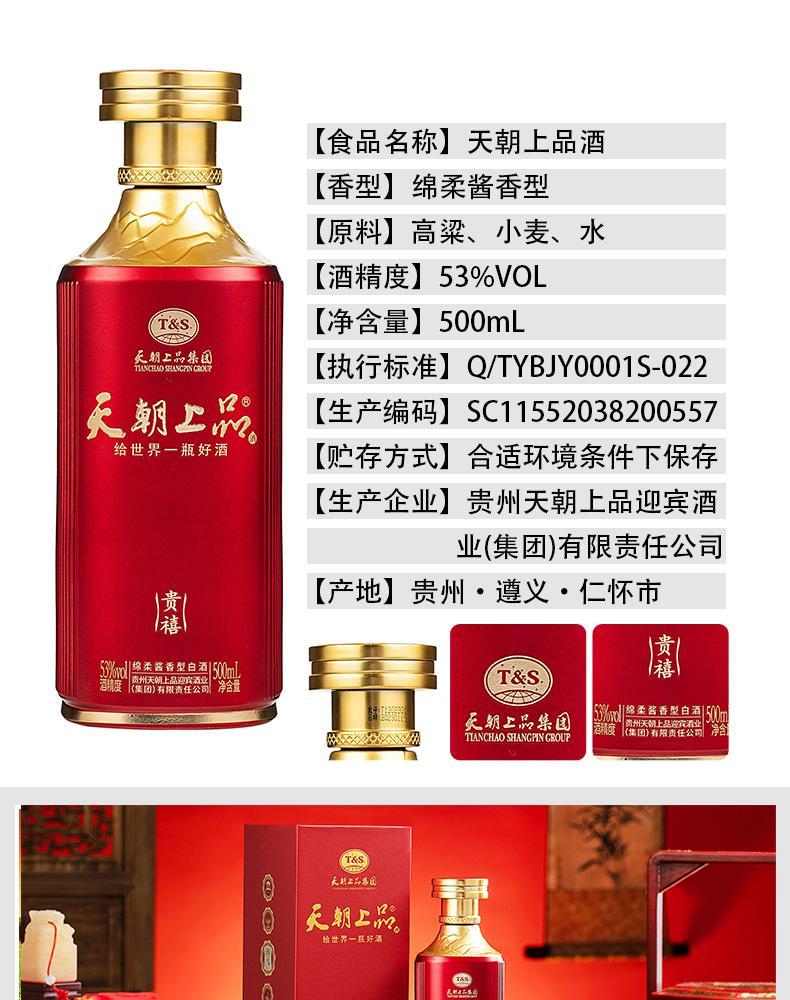 茅台天朝上品贵禧酒 53度绵柔酱香型白酒 整箱500ml*6瓶包邮