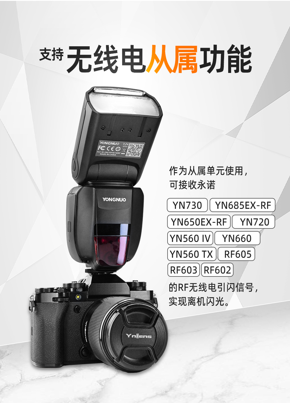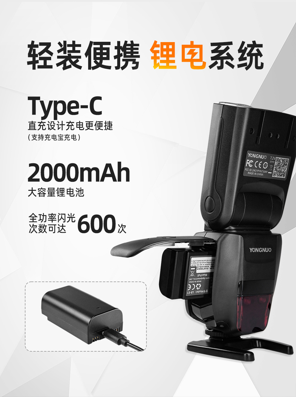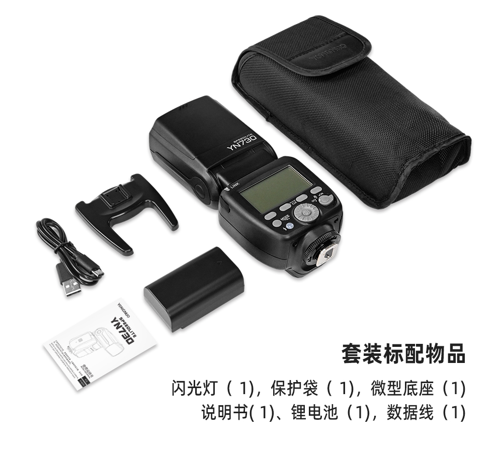 永诺 YN730 锂电池通用闪光灯,大指数GN60,1秒回电,适用于佳能/尼康/索尼/富士以及其它有热靴接口的相机