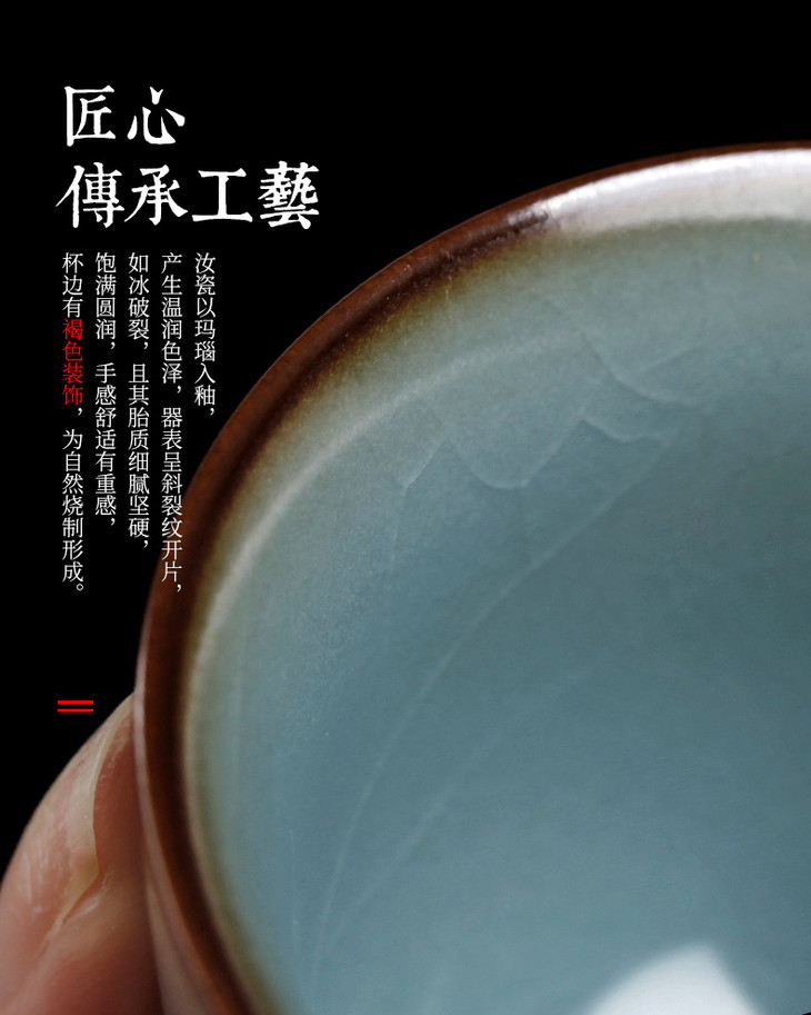 汝窑开片冰裂釉小茶杯主人杯茶盏喝茶品茗杯手工陶瓷功夫茶具单杯