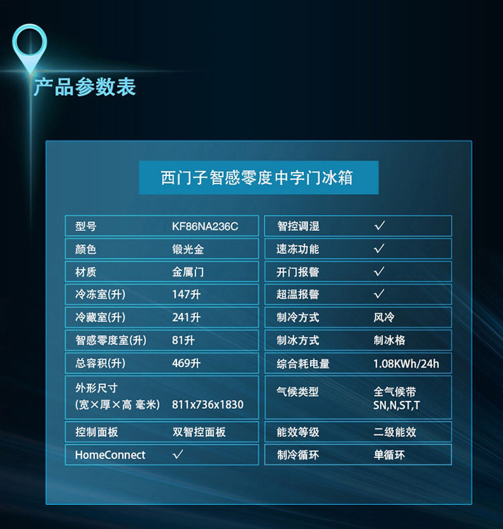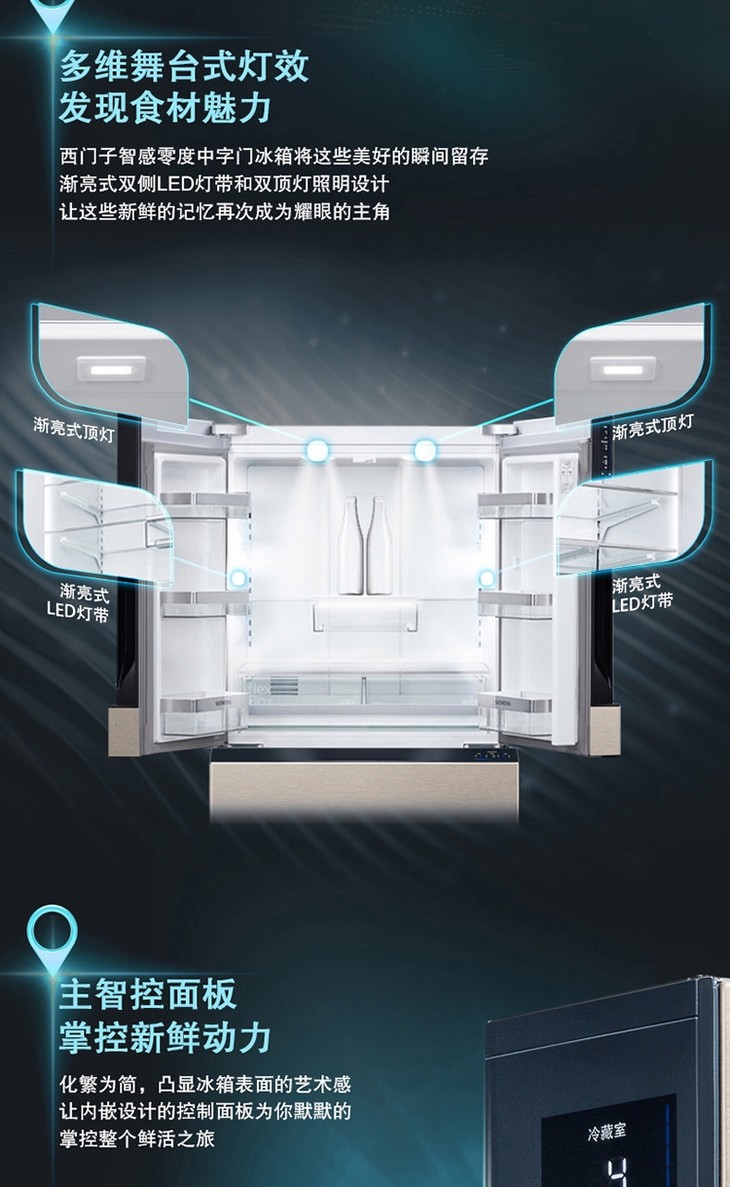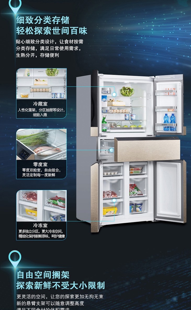 西门子(SIEMENS)469升多门中字门冰箱 智能互联 零度保鲜冰箱BCD-469W(KF86NA236C)