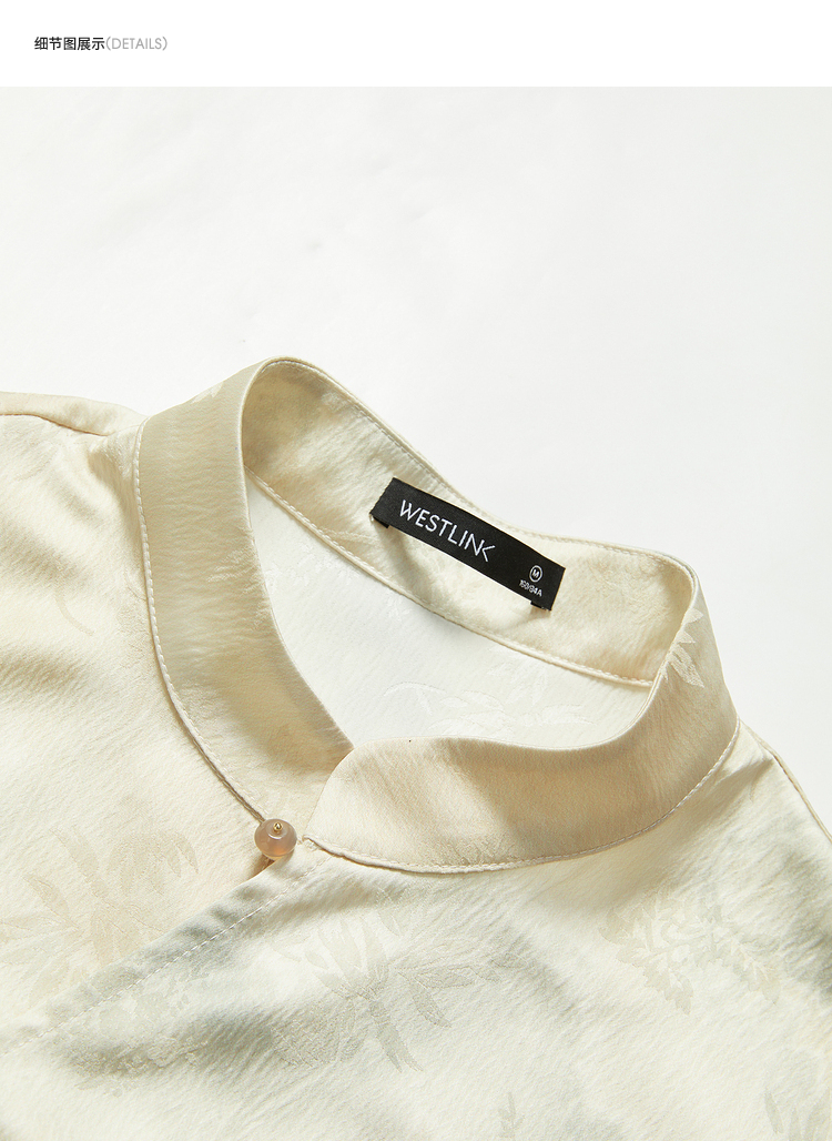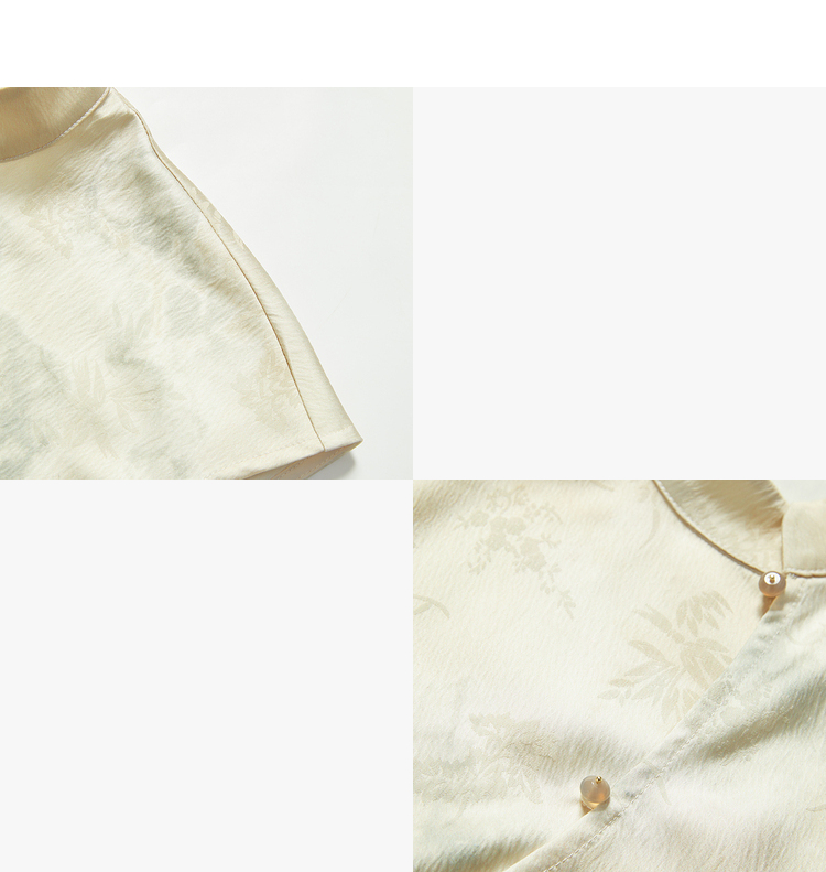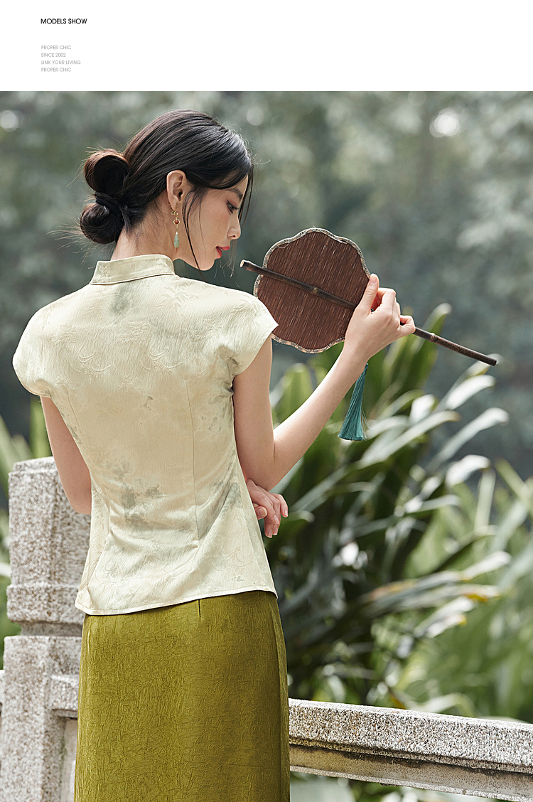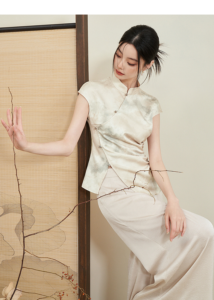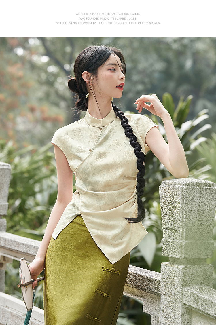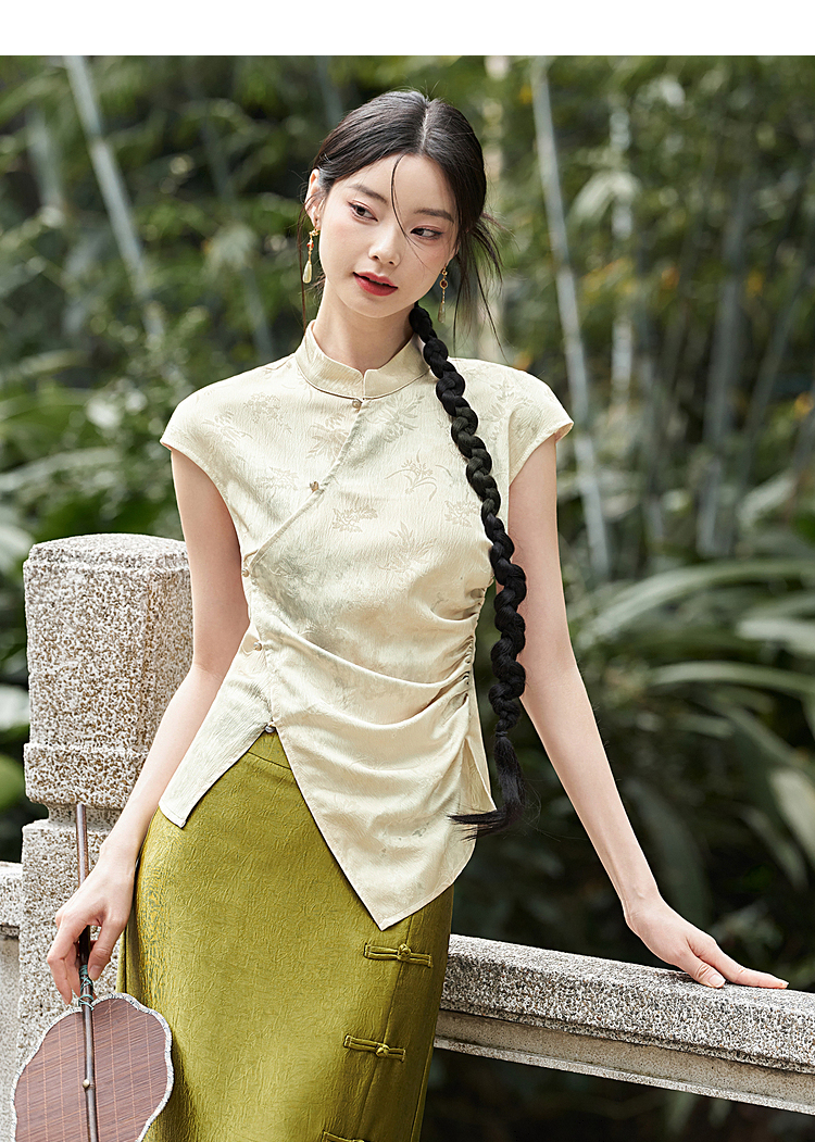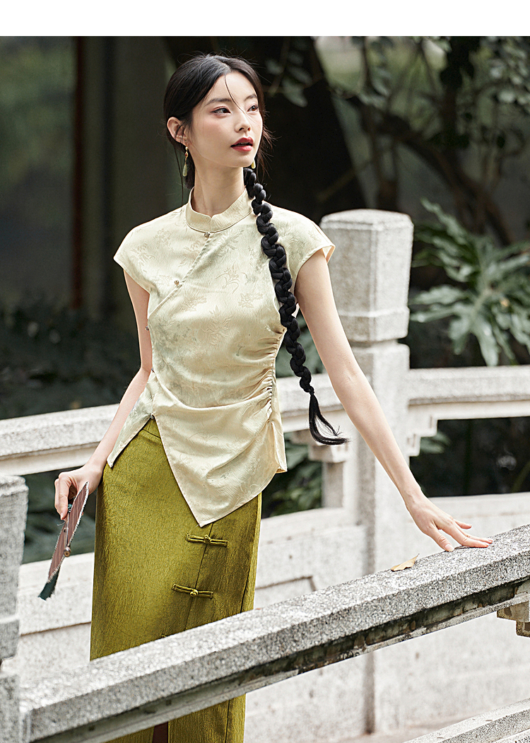 新中式国风不规则开襟珠扣短袖衬衫新款古典温婉衬衣V0440186