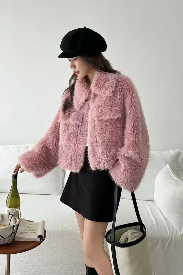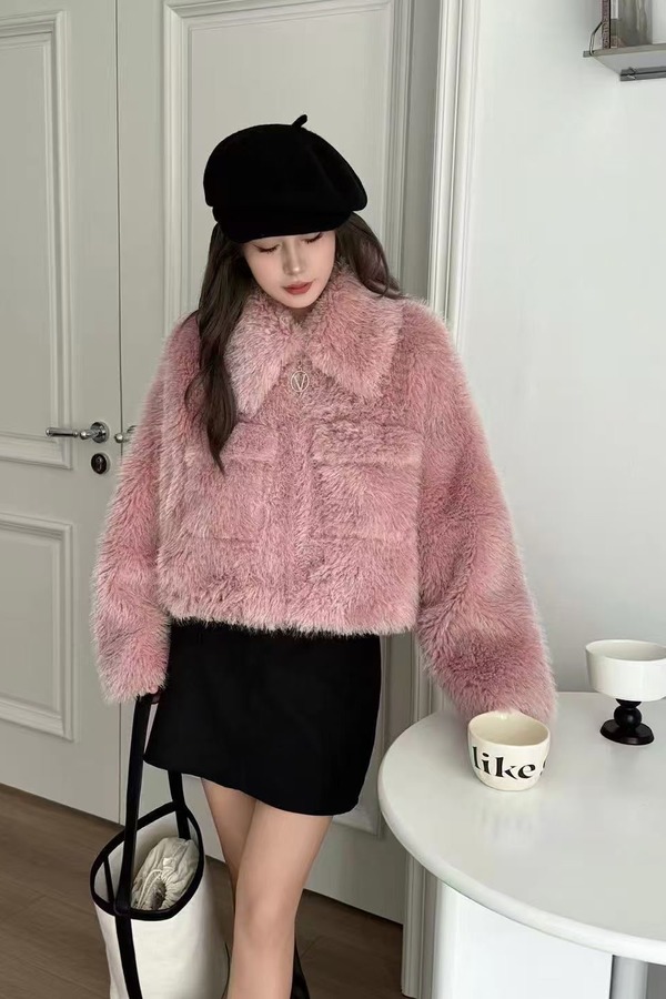LNNNS 甜妹毛绒绒翻领显高短款皮草外套 21922