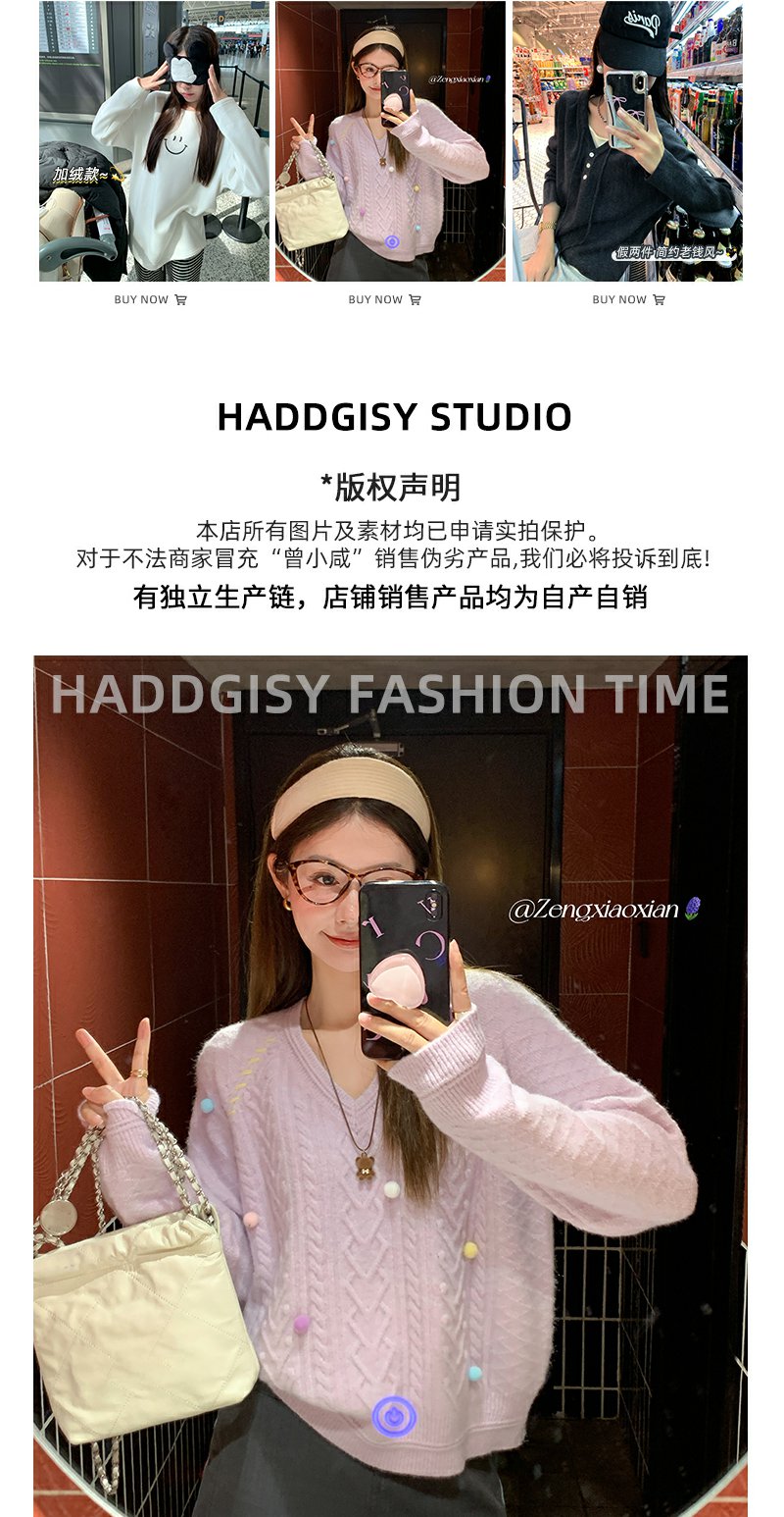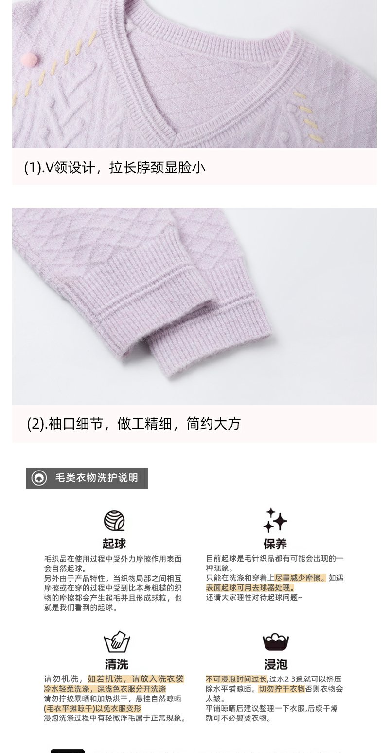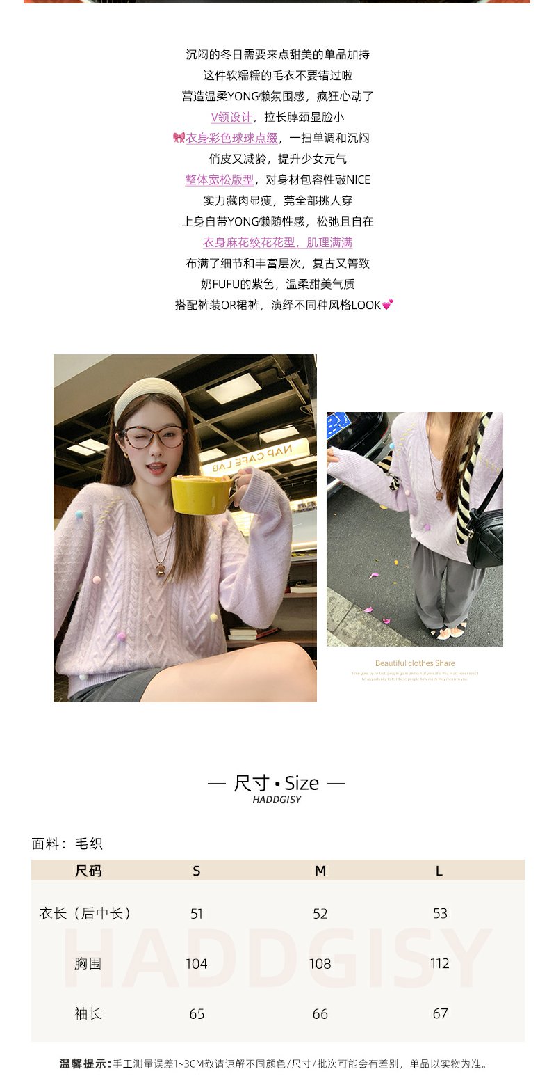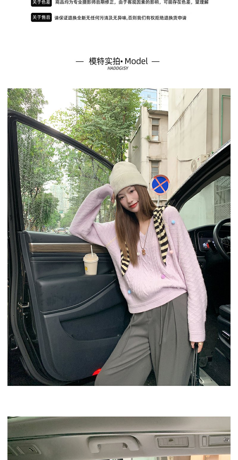 <曾小咸推荐>新品现货秒杀!卖完下架不再补 !微信粉丝打折价!!紫色V领彩色球球毛衣 日常199.99/件 立减110 秒杀89.99/件!!