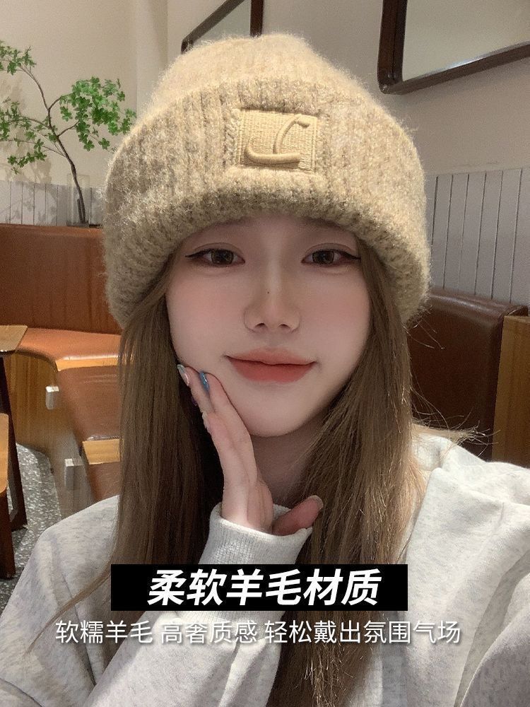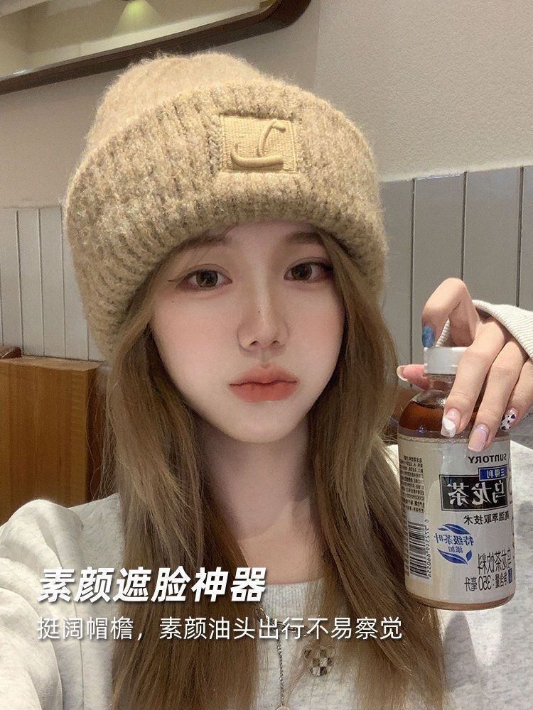 「9.9到手!四色可选」帽子大头毛线帽子女秋冬季新款宽松保暖堆堆冷帽大脸显脸护耳针织配饰