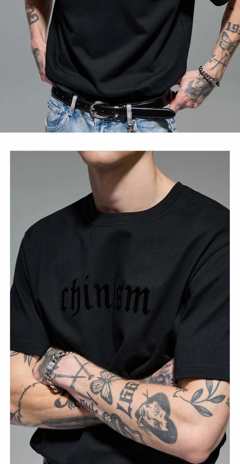 CHINISM赤尘 植绒印花短袖T恤男夏情侣纯棉半袖男士休闲美式上衣