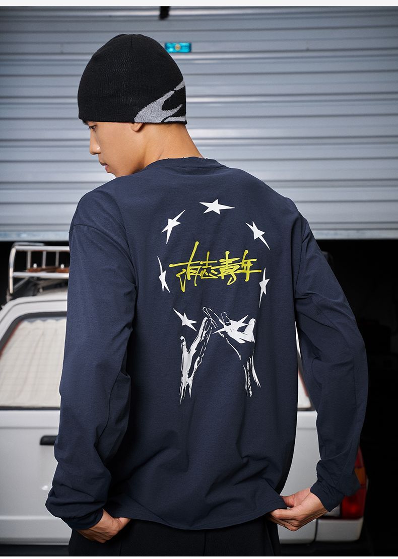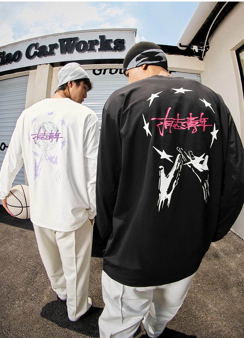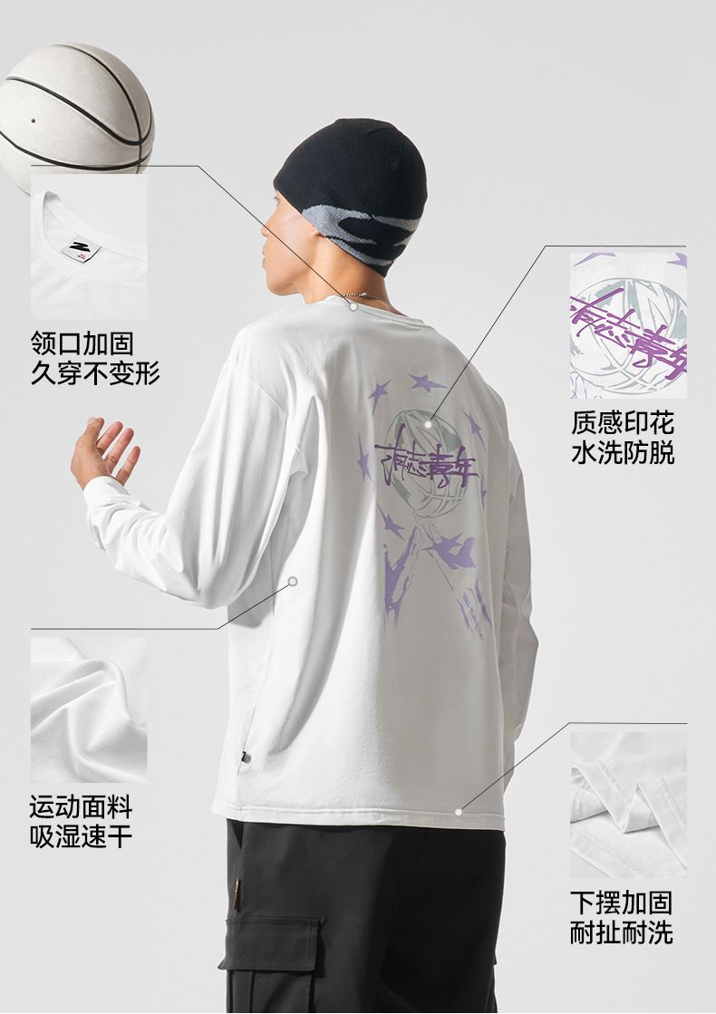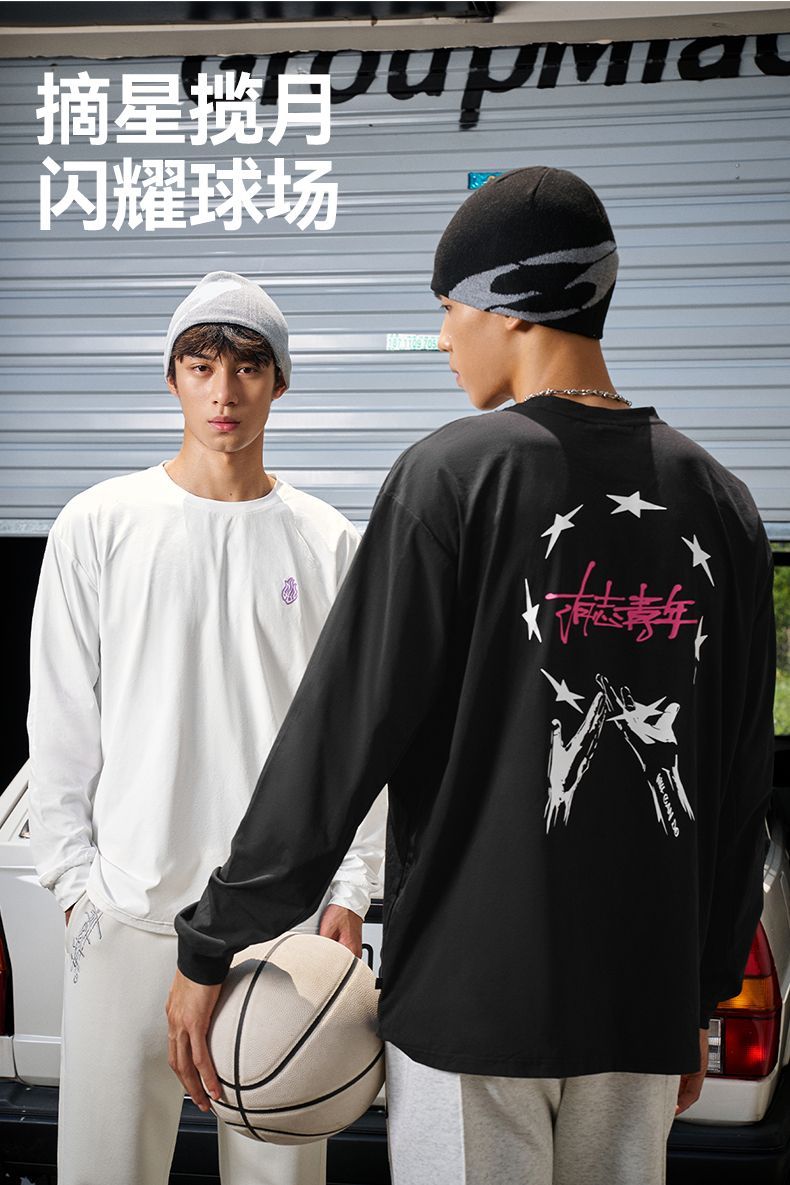 【积分兑换】有志者UZIS宽松透气体恤休闲运动长袖男款跑步篮球训练健身服摘星