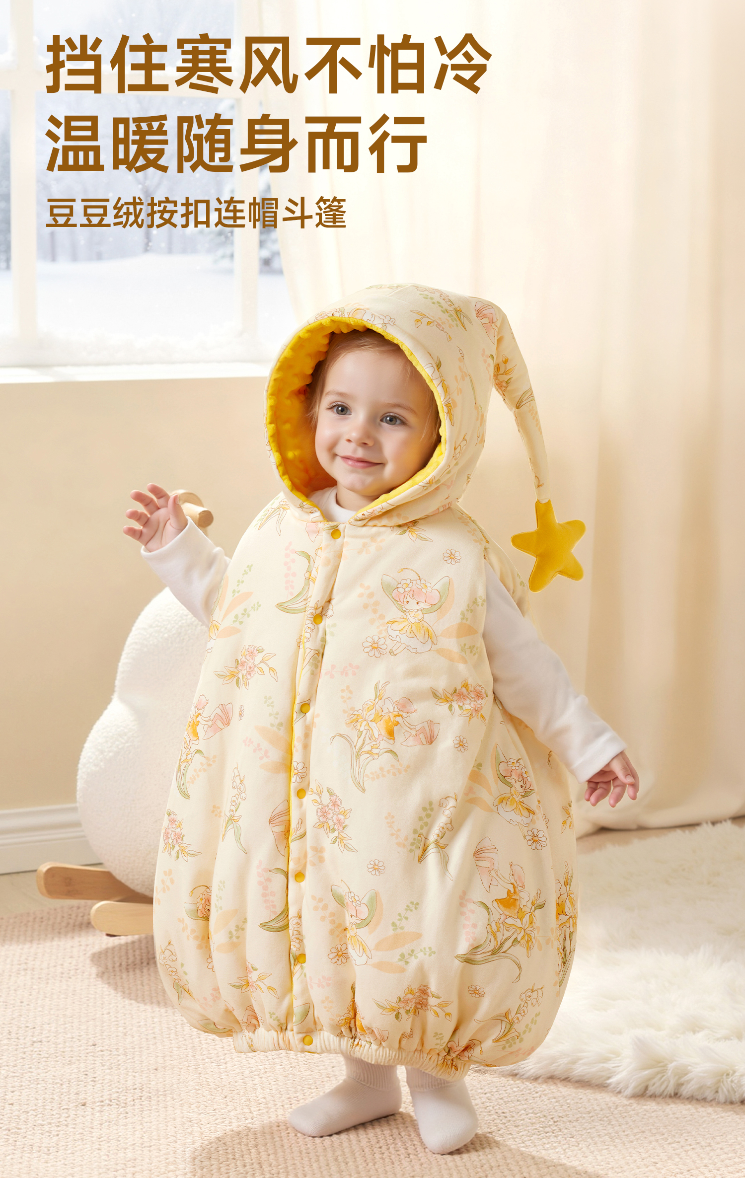 婴儿披风斗篷秋冬外出女宝宝男童加厚出门防风防寒外套小月龄披肩