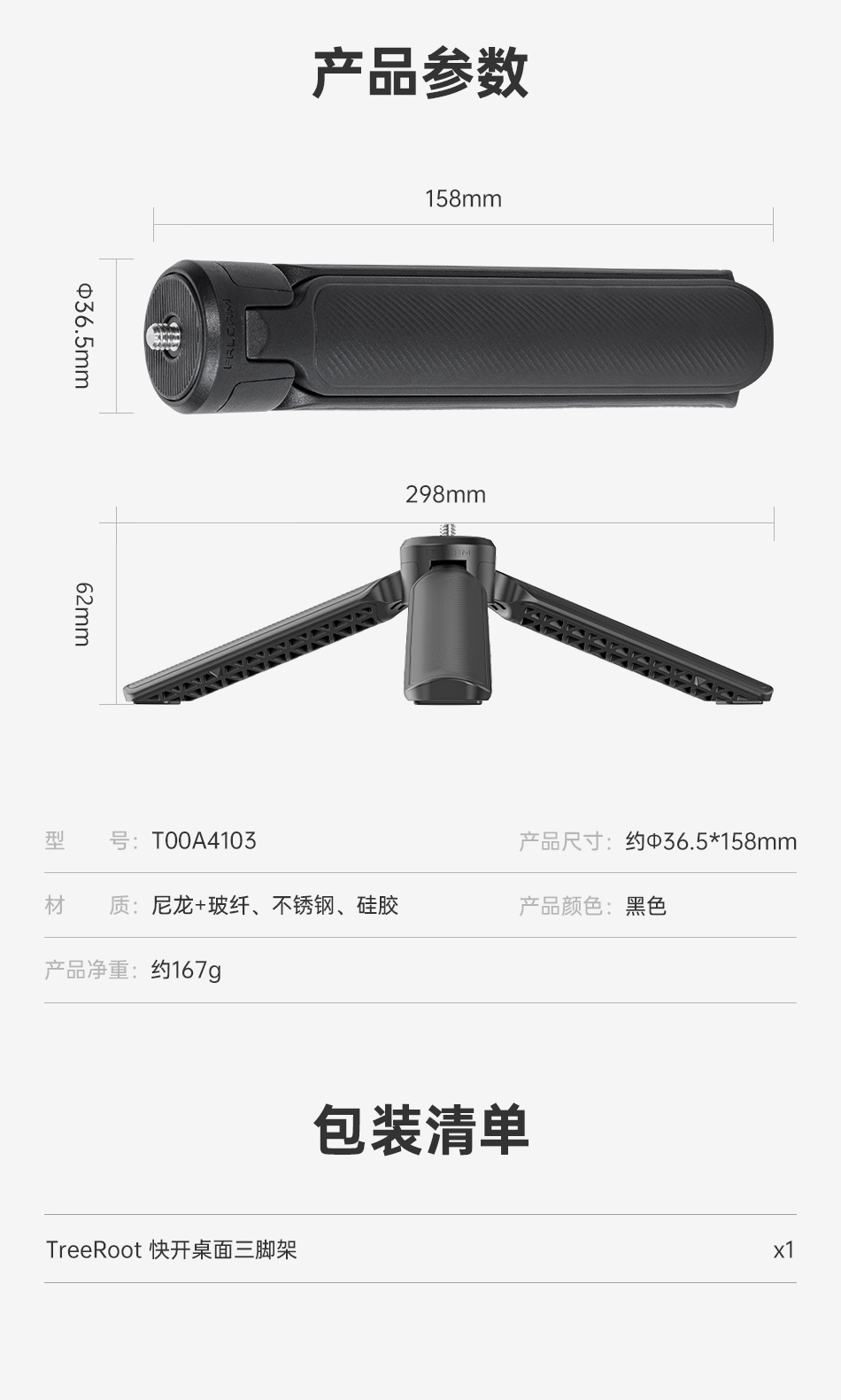 Ulanzi优篮子 小隼快开桌面三脚架适用大疆DJI稳定器支架单反相机架桌面落地支架摄影摄像架子便携式三脚架