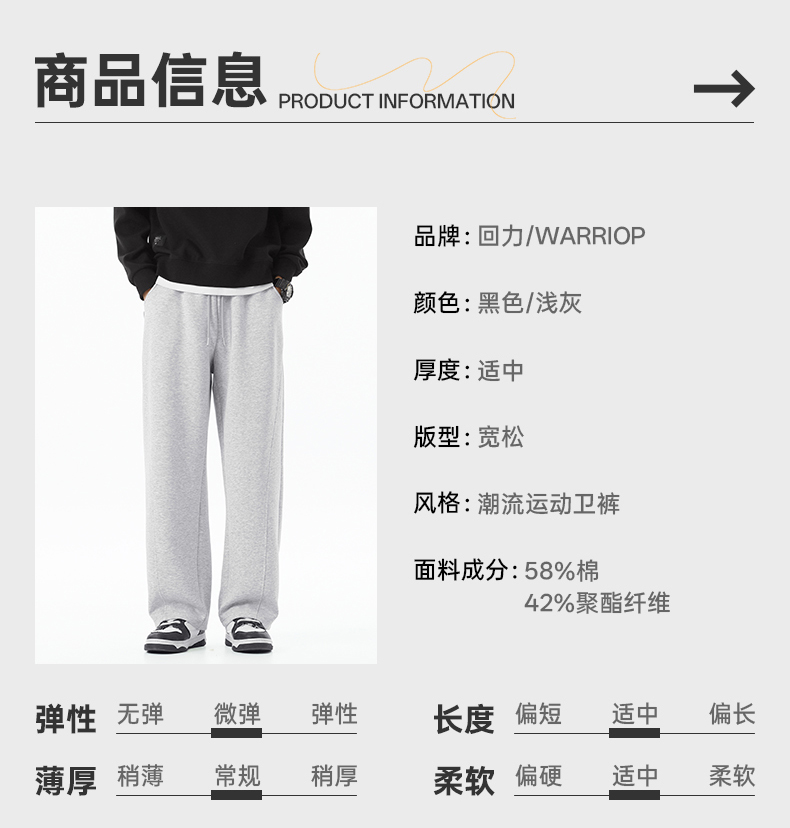 回力裤子男款运动2025秋季新款宽松休闲男士直筒阔腿松紧腰长卫裤