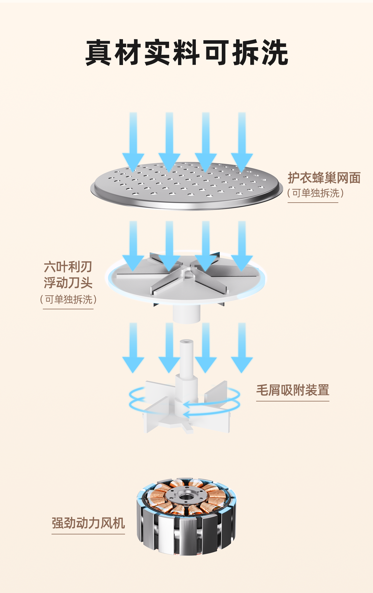 【毛球探灯 吸剃一体】坂田釜作毛球修剪器 6叶刀头 强劲动力 三档可调 去球干净不伤衣 一扫剔净 平滑顺手 充电/带线二合一 可拆卸毛球仓 易清洗