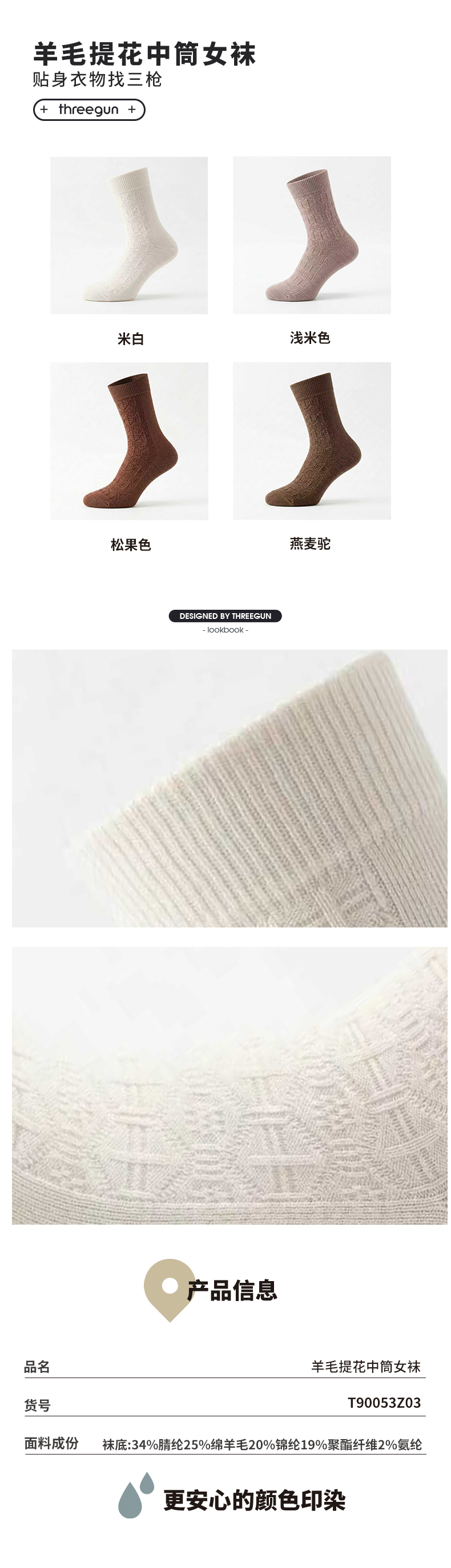 Threegun三枪 羊毛提花中筒女袜(1双装)-T90053Z03
