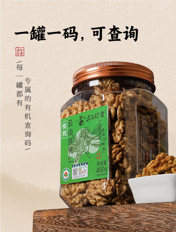 【2025年新货】采云行者有机云南核桃仁450g-罐装云南103核桃仁 不苦不涩 口味香甜