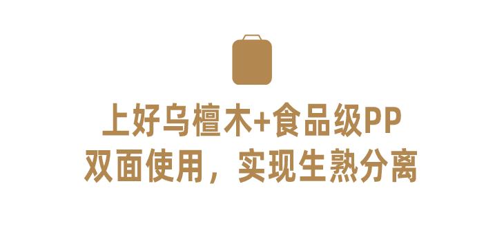 它采用乌檀木/食品级PP材质结合制作,双面加厚,可以很好地实现生熟分离,减少细菌的交叉传播。