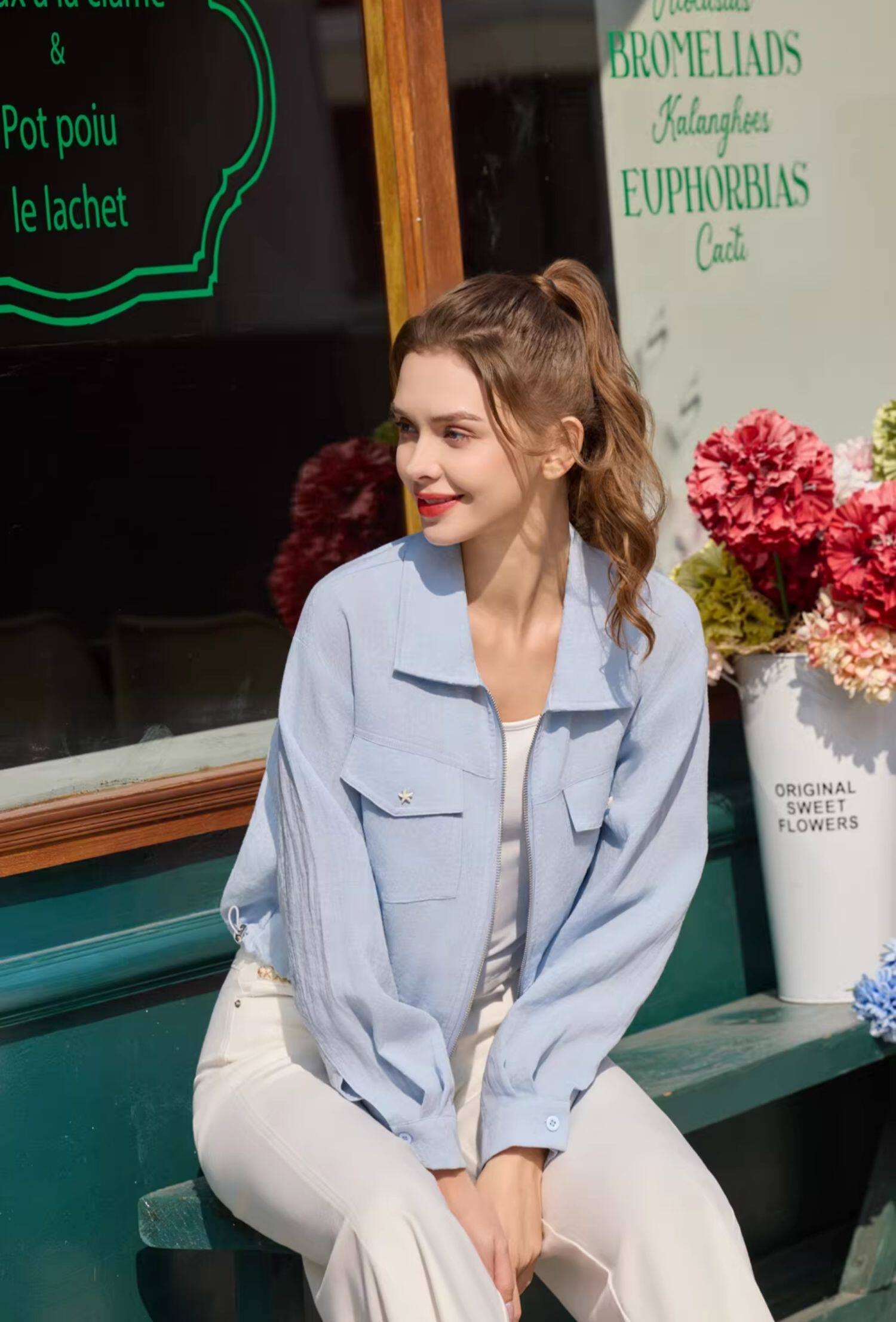 半身缘女装 春季宽松两件套翻领夹克外套261213U01340271