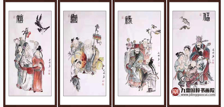 高云鹏《福禄寿禧》68cm*138cm*4 人物四条屏作品 客厅/茶室挂画