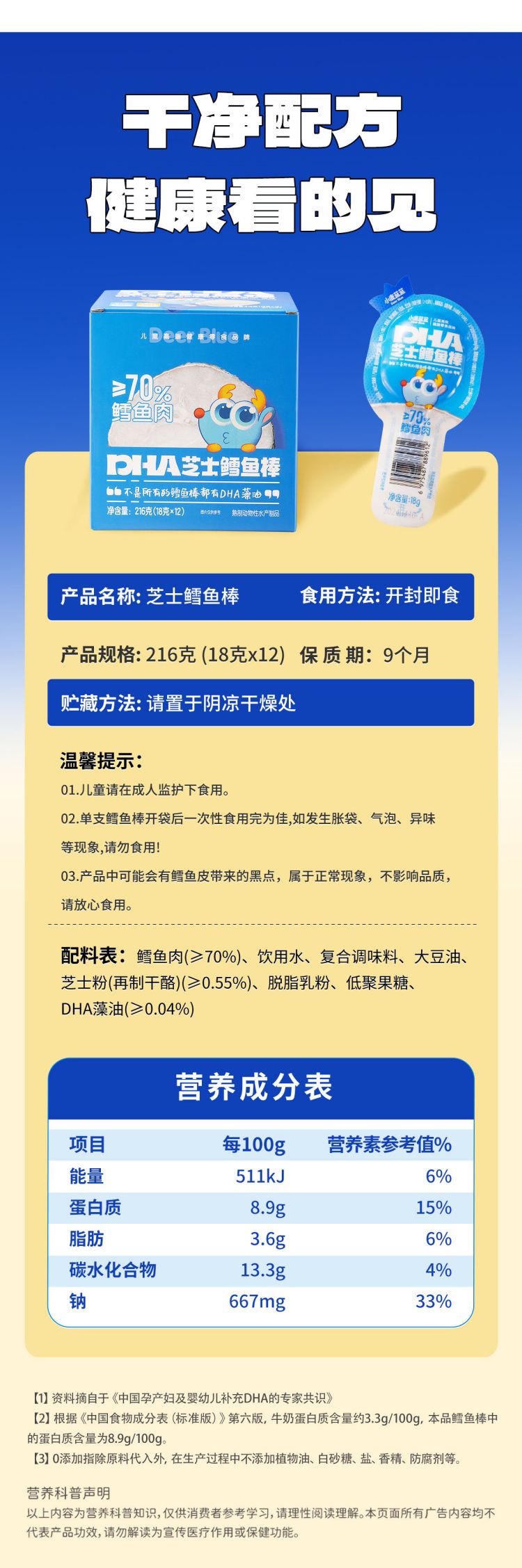 【新品上线】DHA芝士鳕鱼棒/原味/216g(内含12小支)