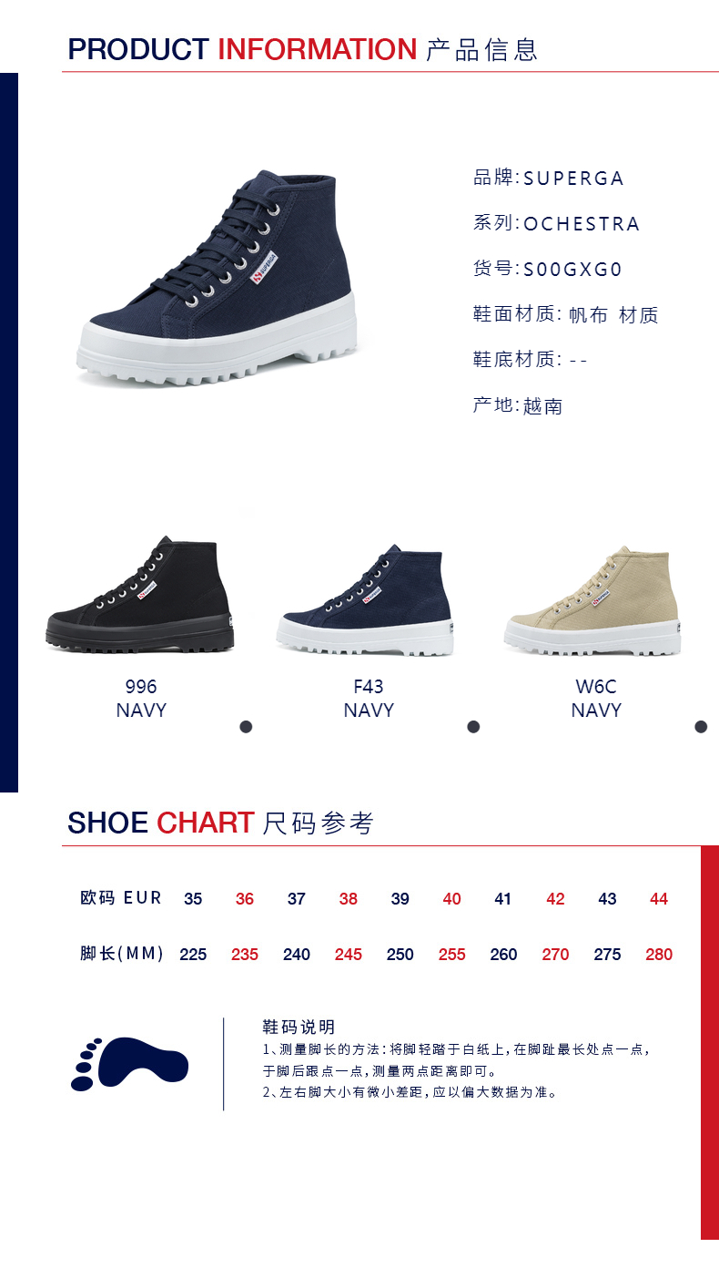 SUPERGA新款 百搭时尚男女情侣高帮靴子帆布 S00GXG0