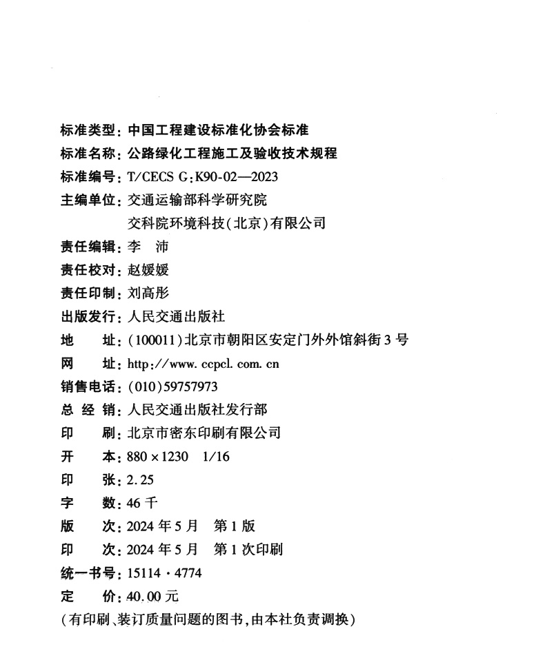 书名:公路绿化工程施工及验收技术规程(T/CECS G:K90-02—2023)