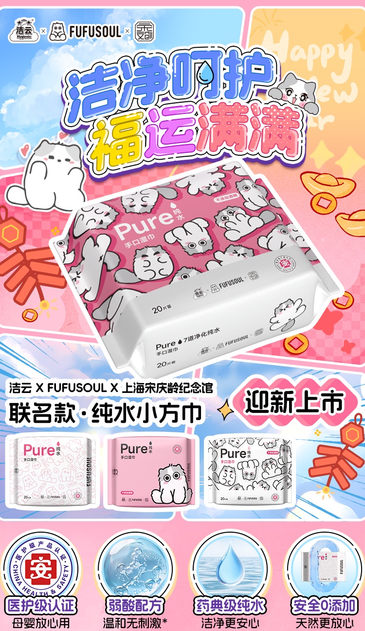 洁云&FUFUSOUL联名纯水湿巾20片*10包