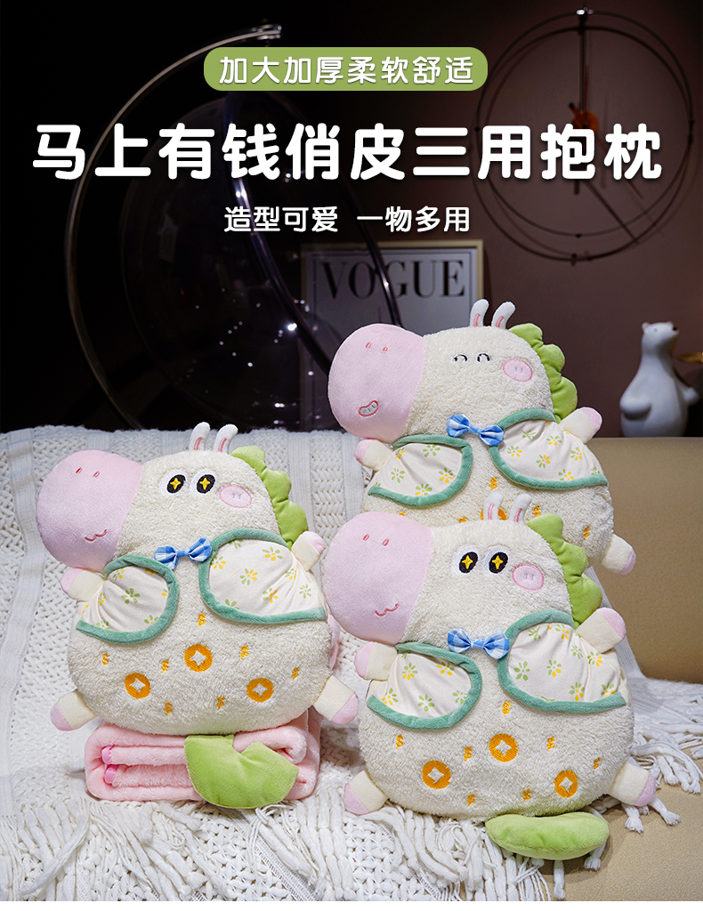 自然醒马上有钱领结小马三用抱枕毯QYL